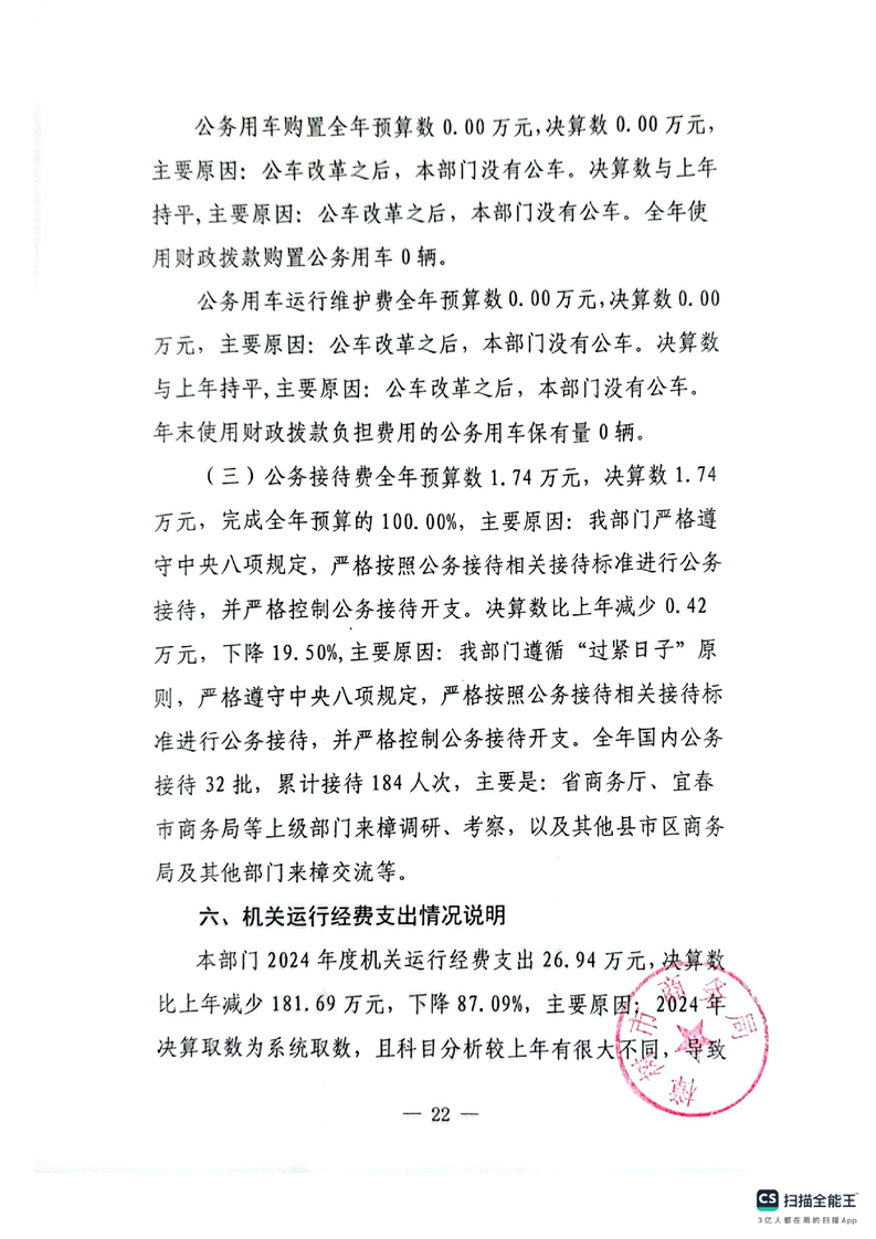 樟樹市商務局2024年度部門決算