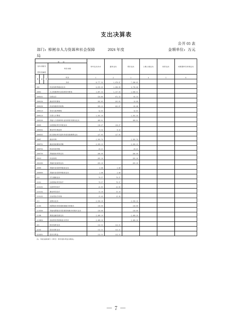 樟樹市人力資源和社會保障局2024年度部門決算