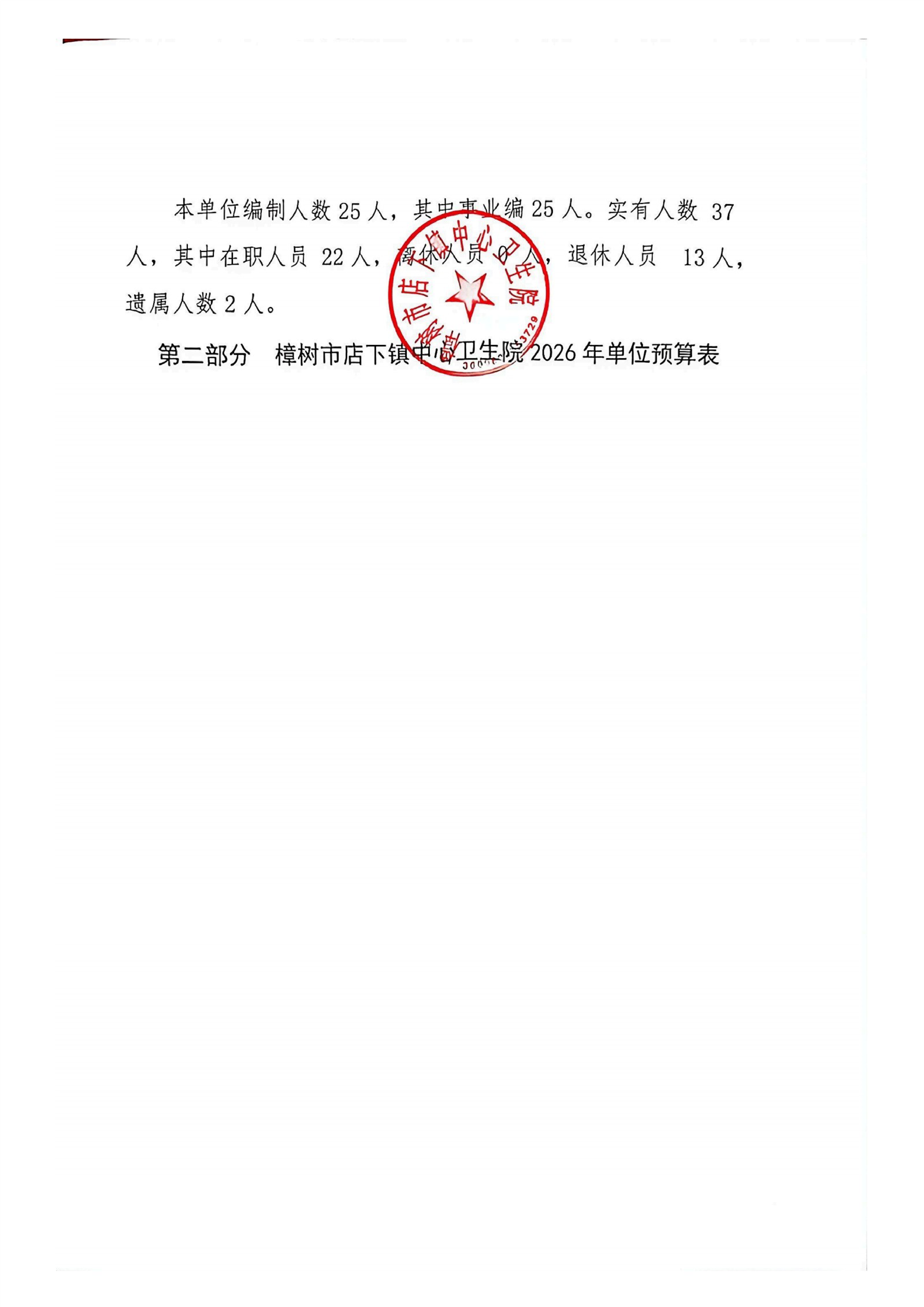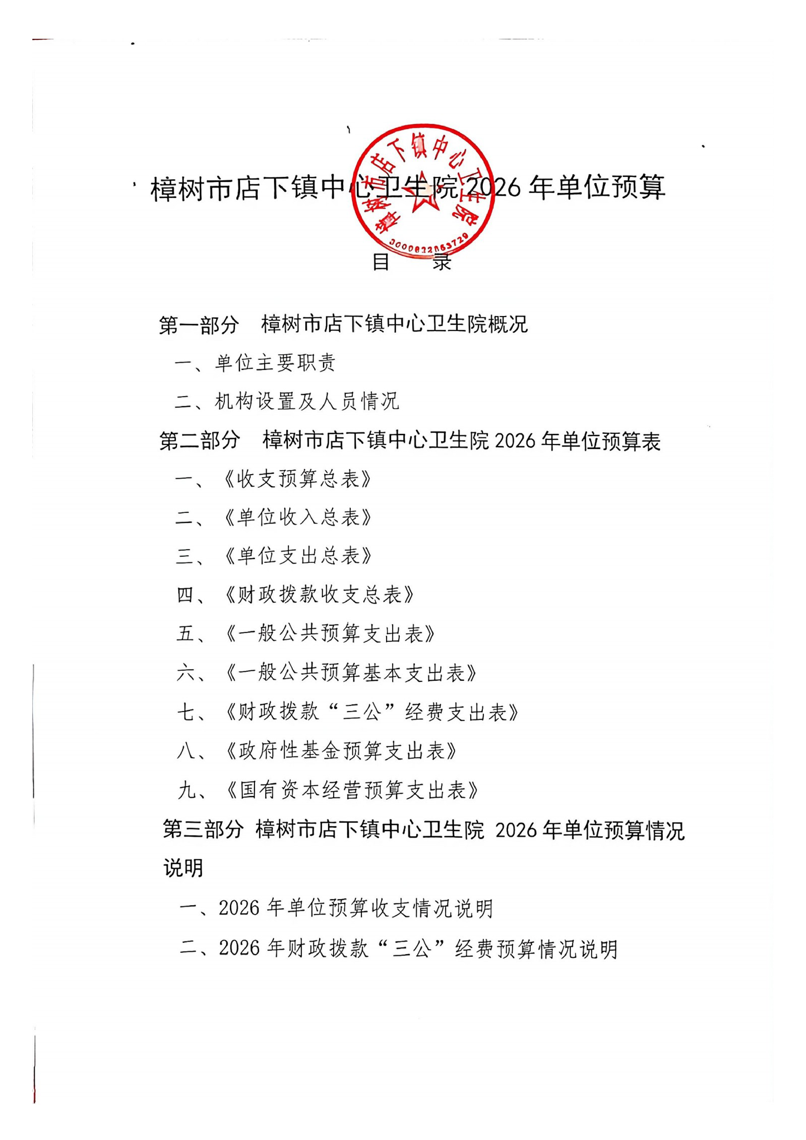 樟樹市店下鎮(zhèn)中心衛(wèi)生院2026年單位預(yù)算