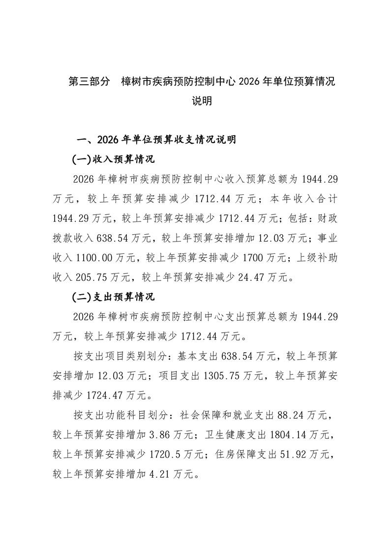 樟樹市疾控中心2026年單位預(yù)算