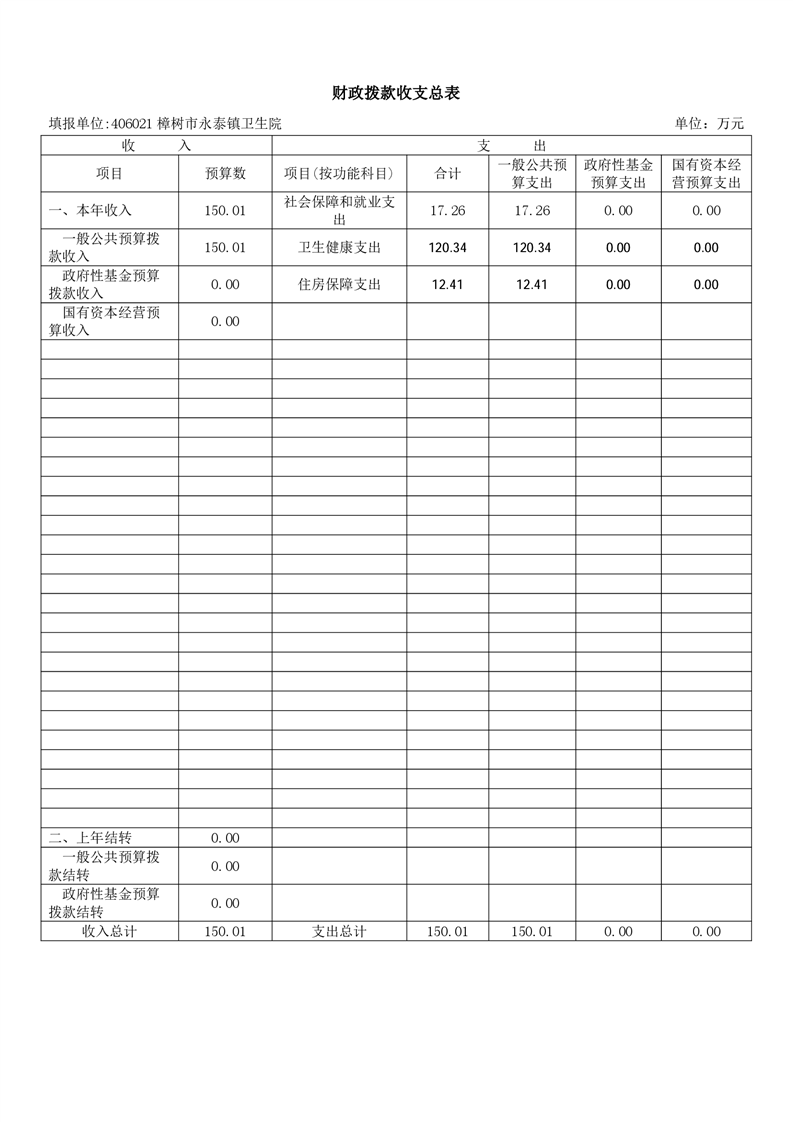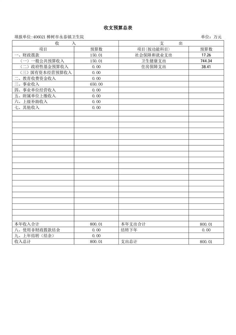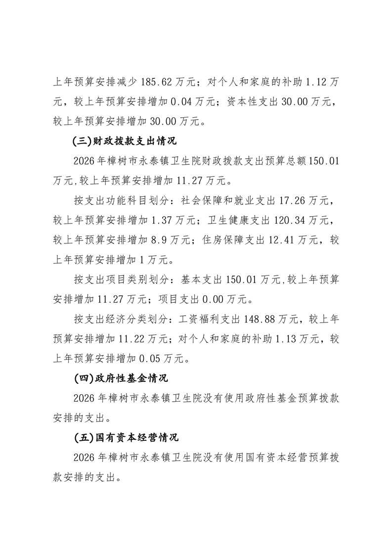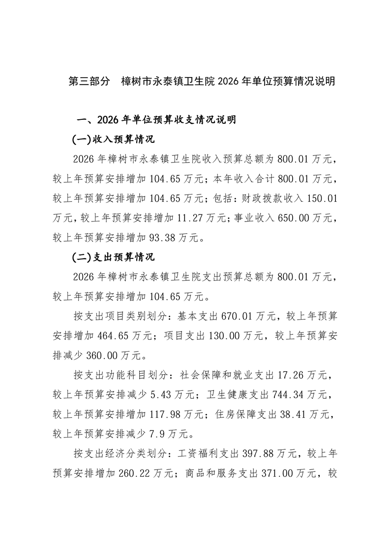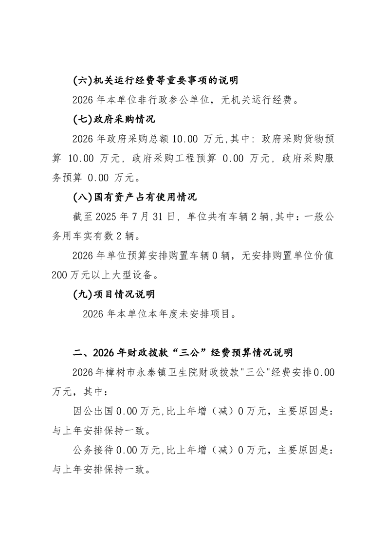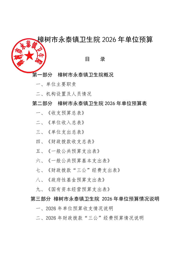 樟樹市永泰鎮衛生院2026年單位預算