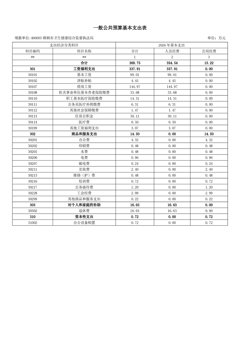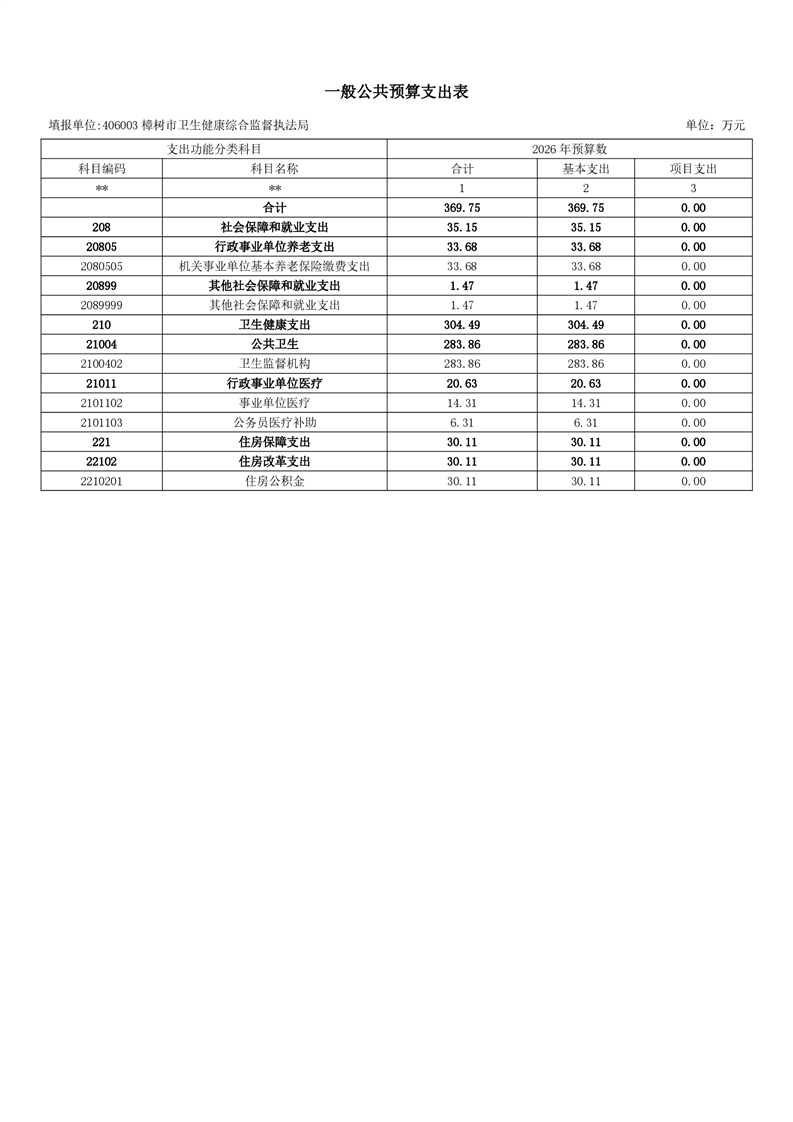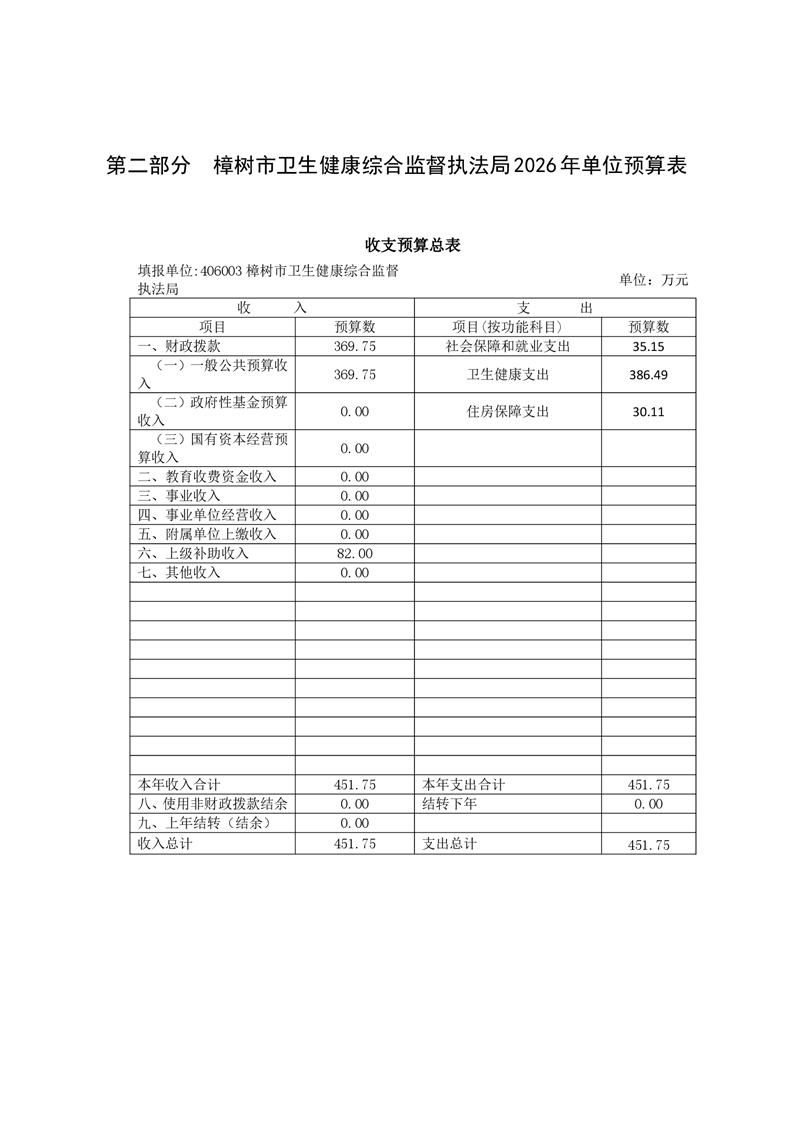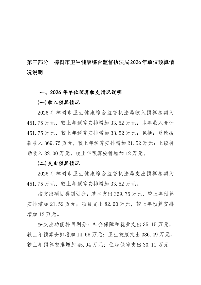 樟樹市衛監局2026年單位預算