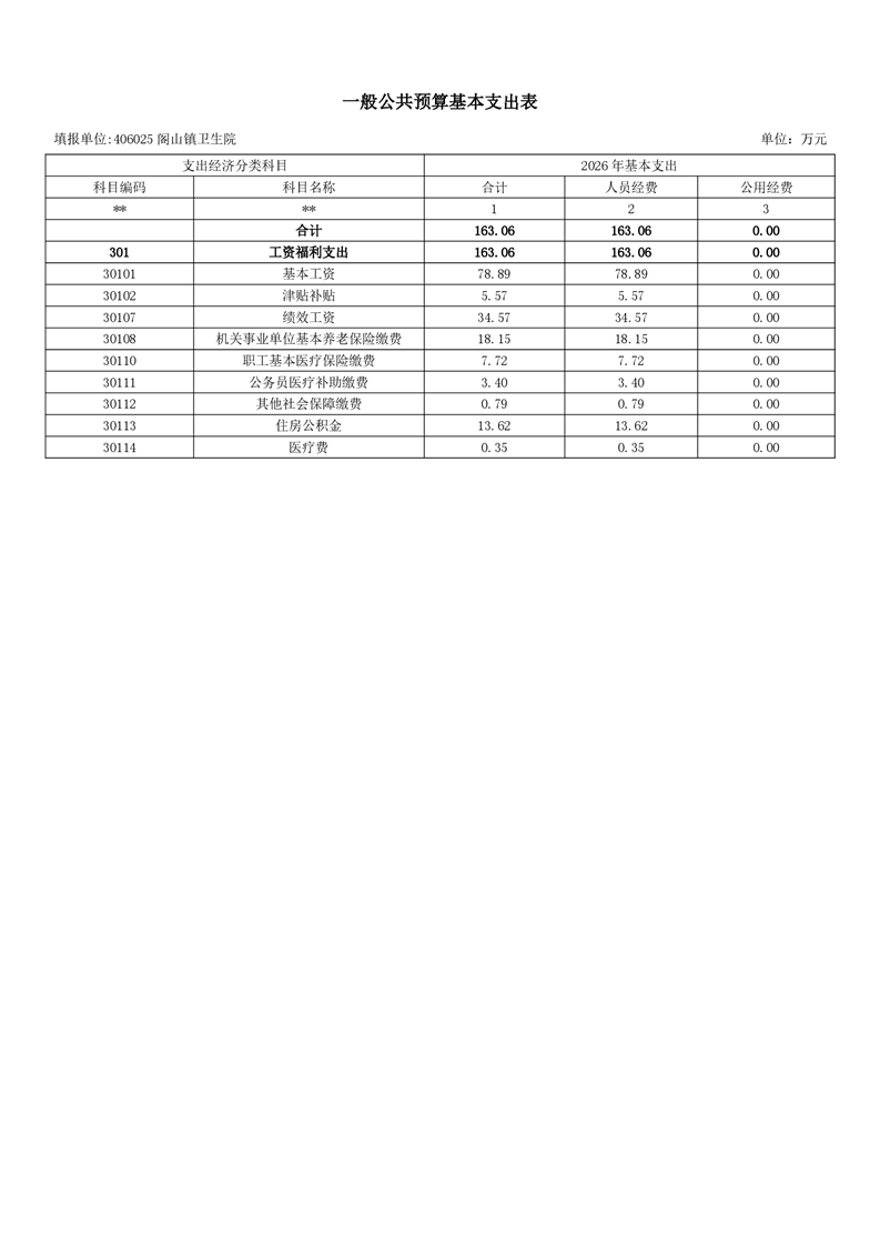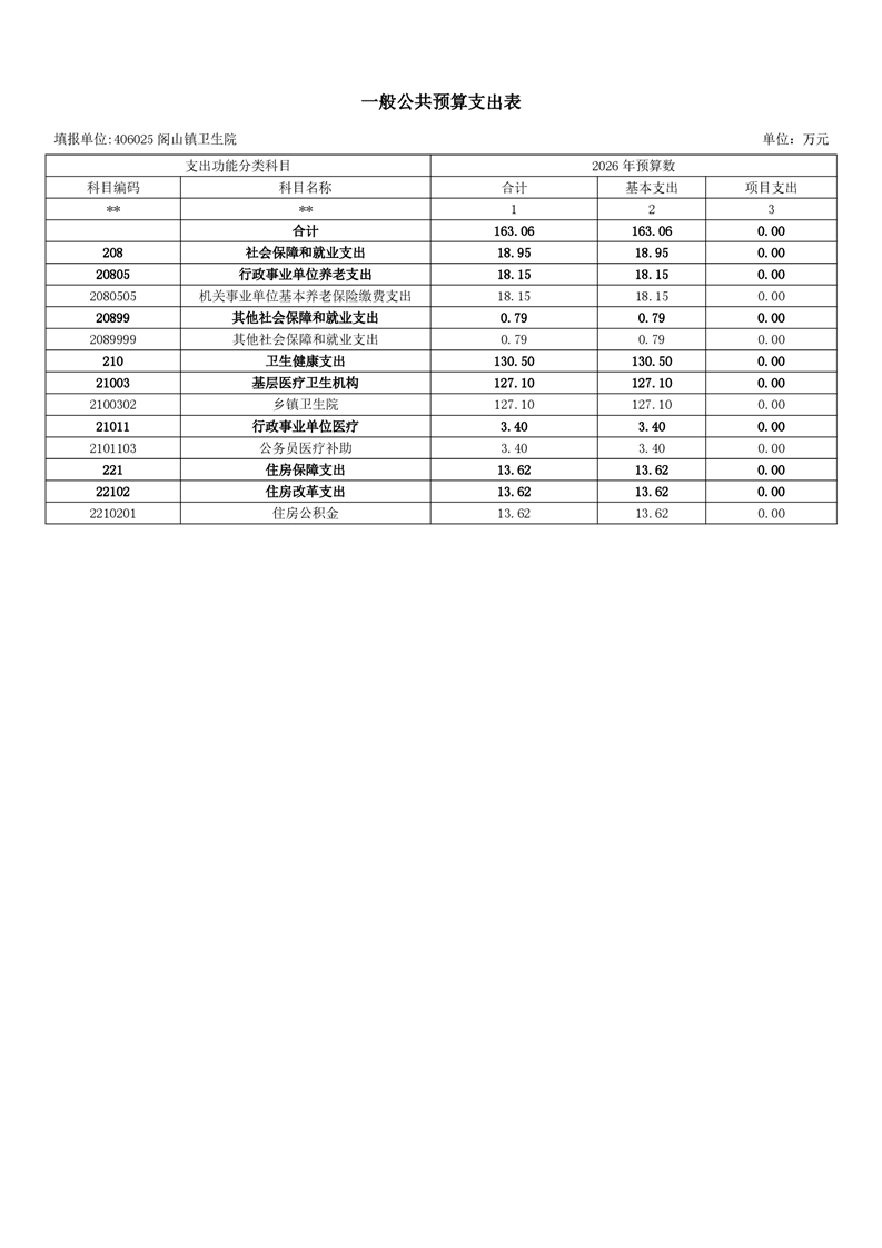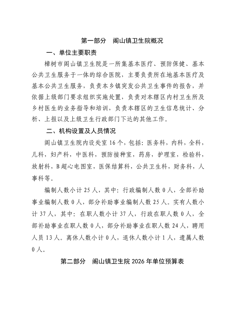 樟樹市閣山鎮衛生院2026年單位預算