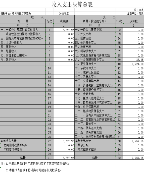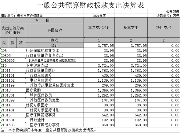 第二部分 樟樹市醫(yī)療保障局2021年度部門決算表