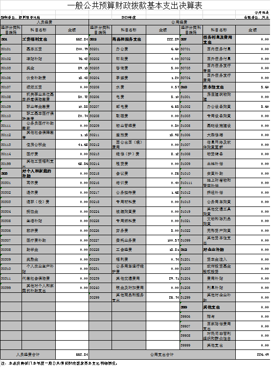 本部門2020年度財政撥款本年支出年初預算數為779.33萬元,決算數為779.33萬元,完成年初預算的100 %。其中:
