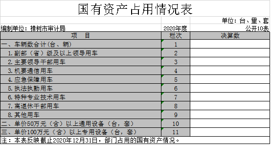 十、國有資產占用情況表