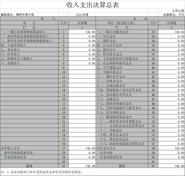 一、收入支出決算總表
