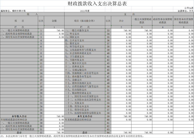 四、財政撥款收入支出決算總表