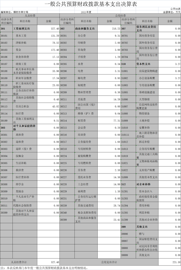本部門2021年度一般公共預算財政撥款基本支出748.90萬元,其中: