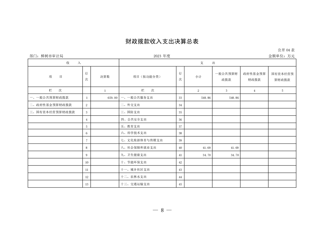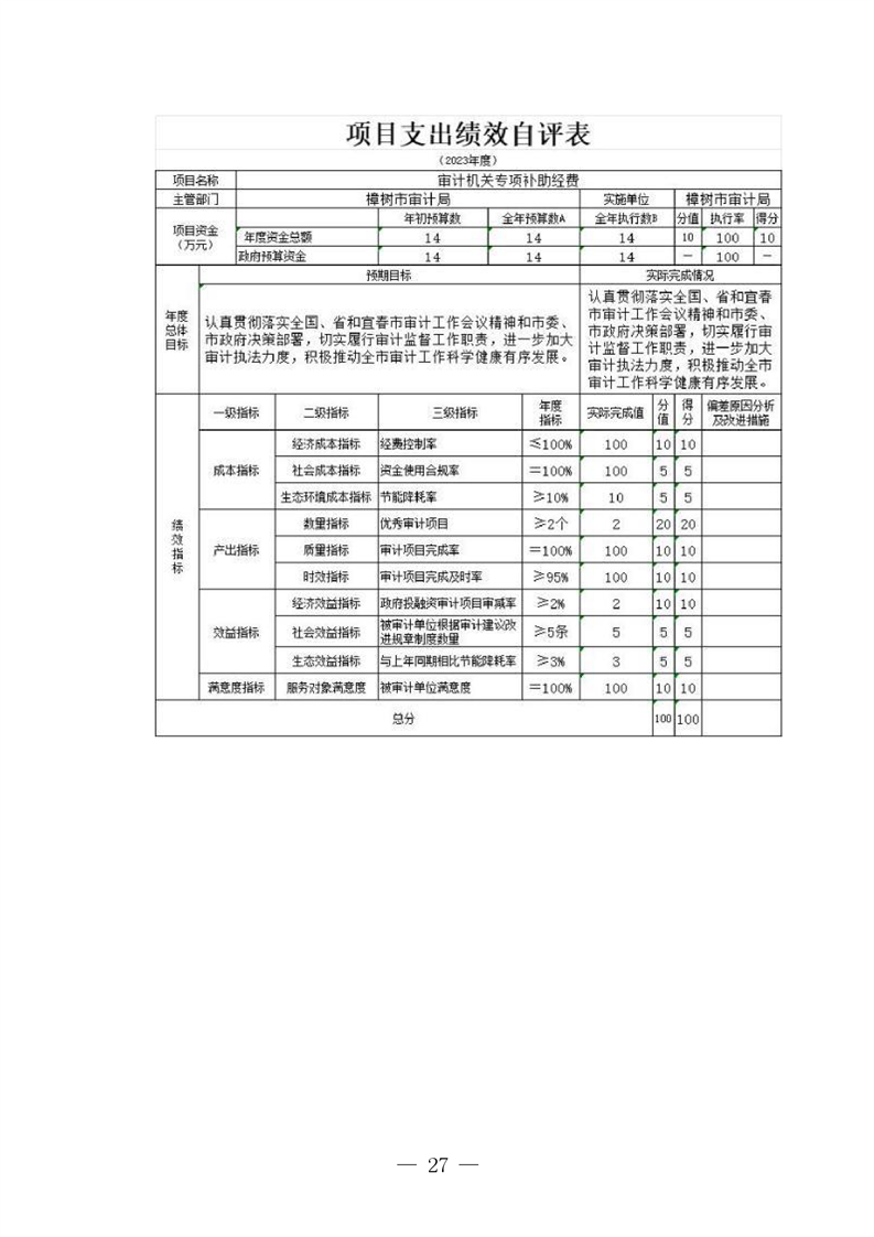 樟樹市審計局2023年部門決算