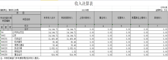 本年收入的具體構成為:財政撥款收入14144.72萬元,占 100 %;事業收入 0萬元,占0 %;經營收入0 萬元,占0 %;其他收入 0 萬元,占 0%。