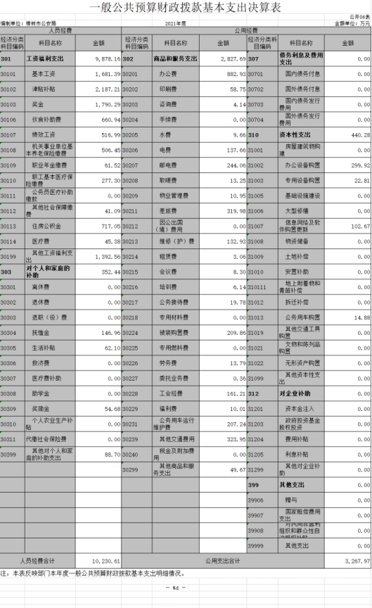 本部門2021年度支出總計14144.72萬元,其中本年支出合計14144.72 萬元,較2020年減少302.57萬元,減少2.9 %,主要原因是:規范了獎勵性工資;年末結轉和結余0 萬元,較2020年增加0 萬元,增長0 %。