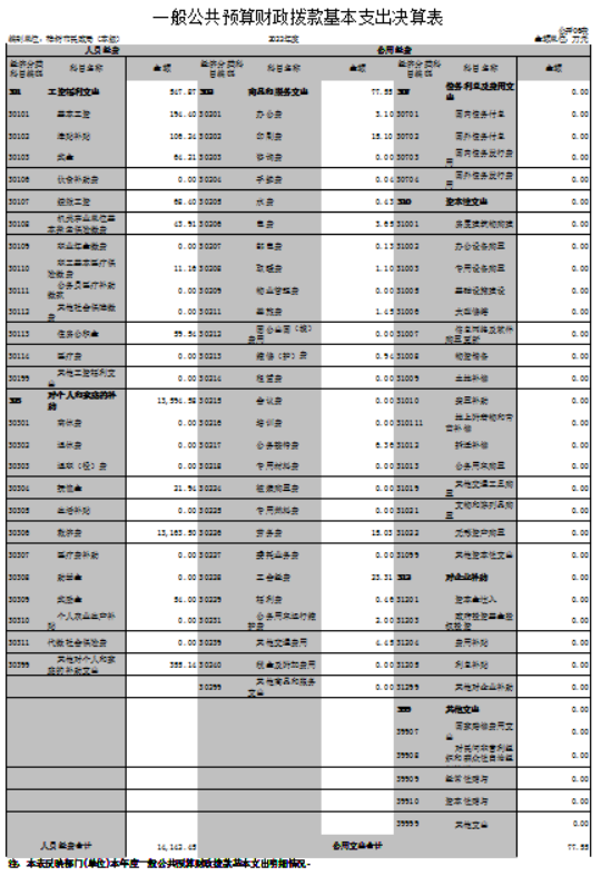 本部門2022年度財政撥款本年支出年初預算數為14220萬元,決算數為14220萬元,完成年初預算的100%。其中: