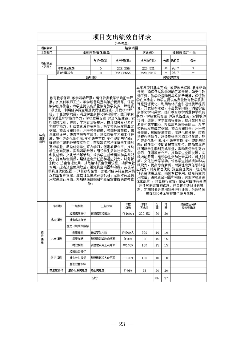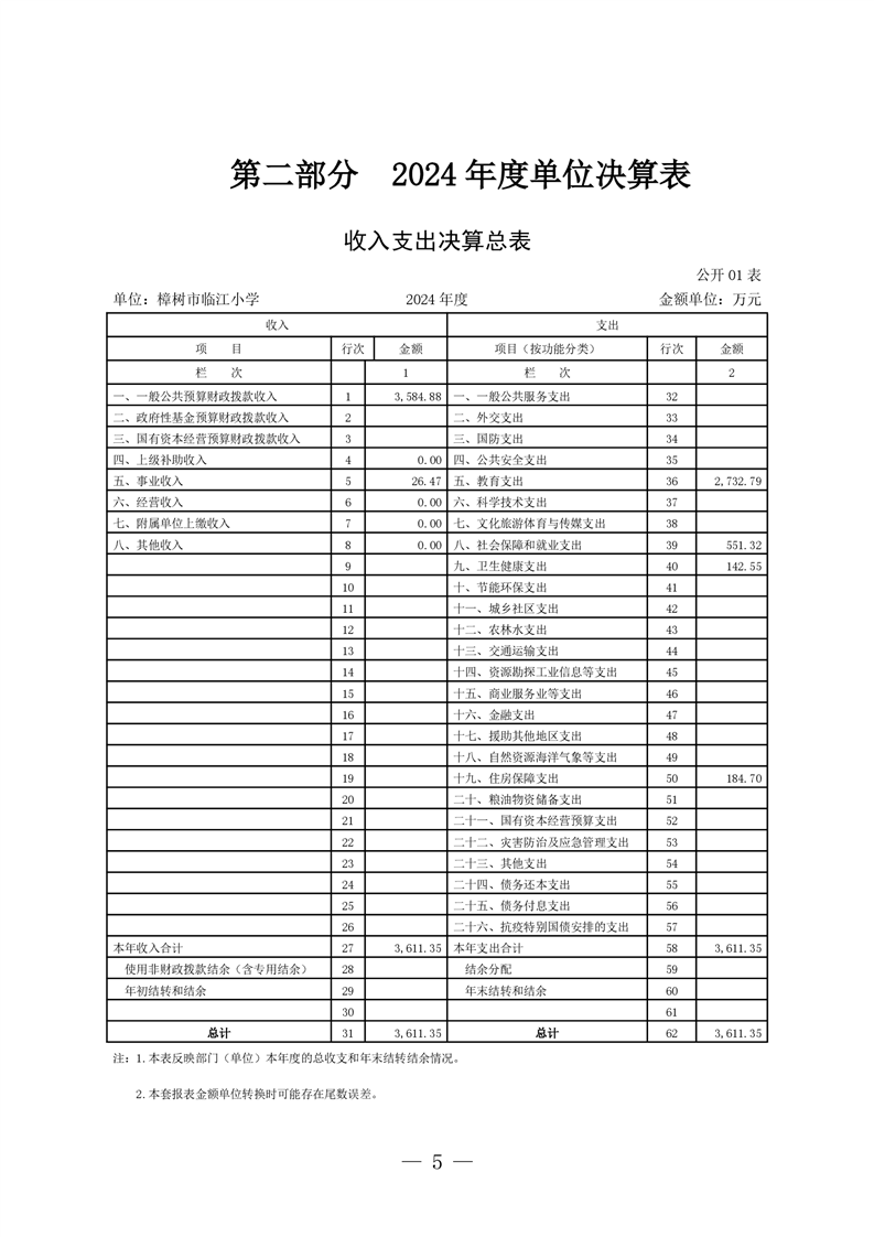 樟樹市臨江小學2024年單位決算