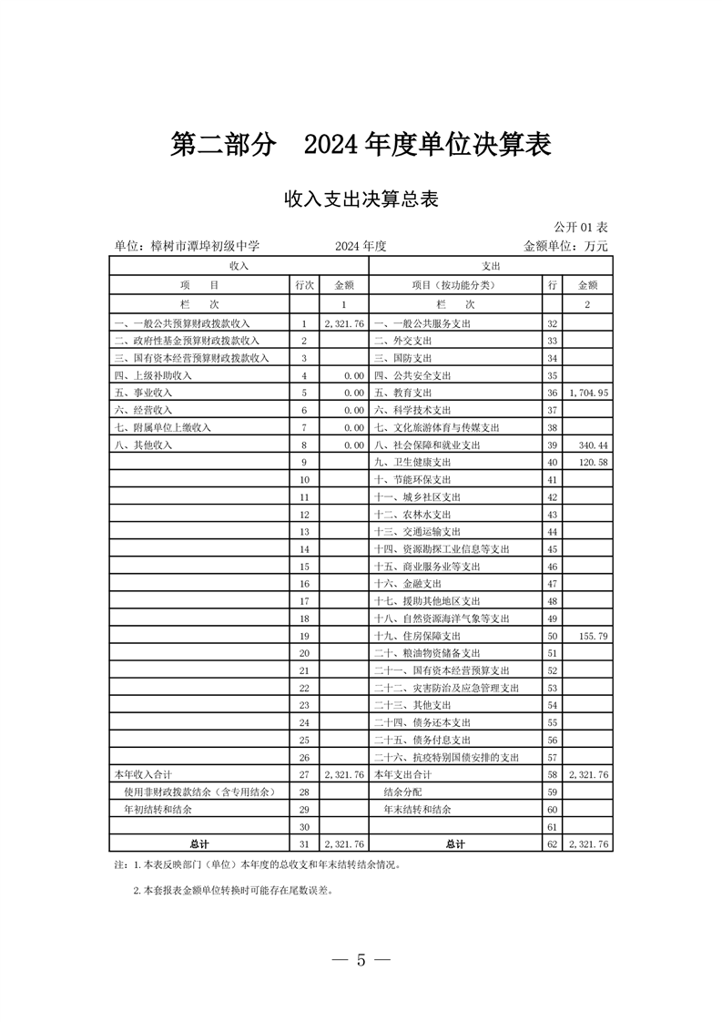 樟樹(shù)市潭埠初級(jí)中學(xué)2024年單位決算