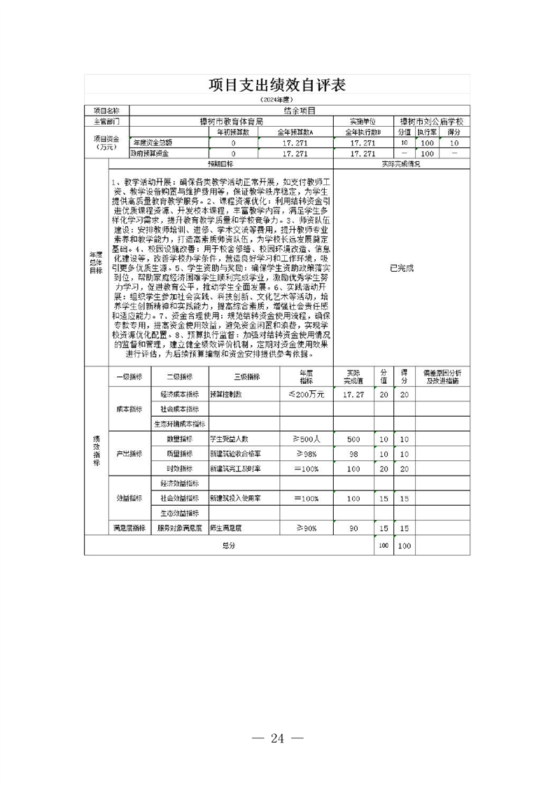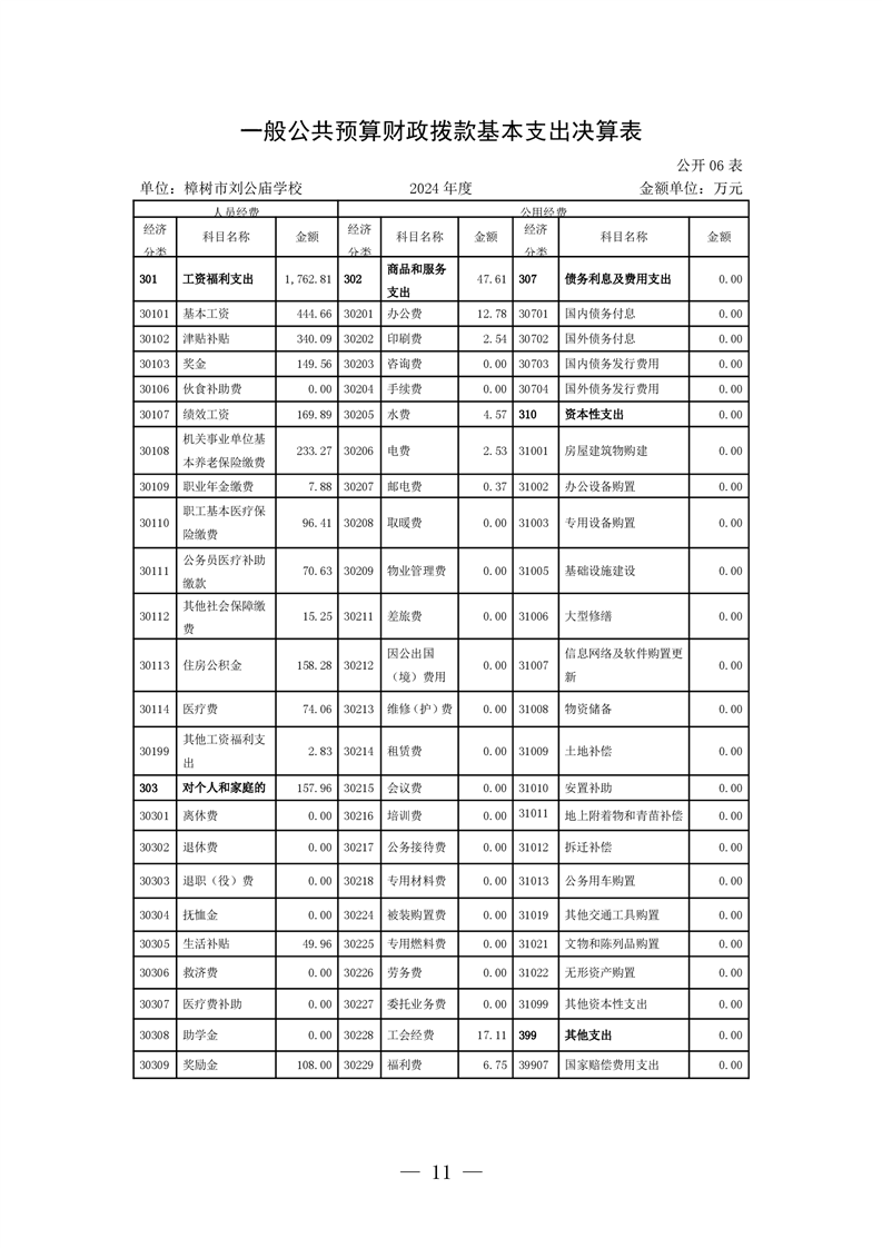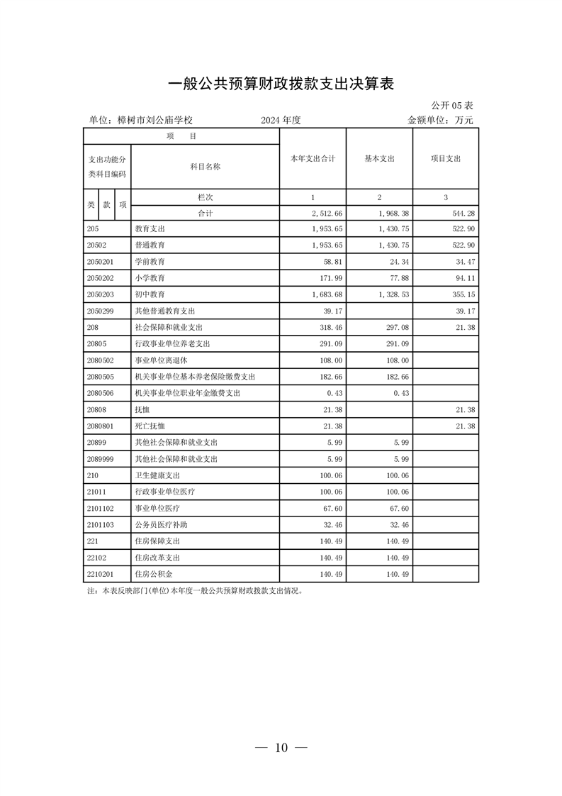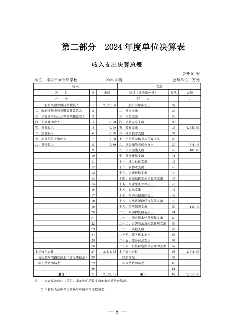 樟樹市劉公廟學校2024年單位決算