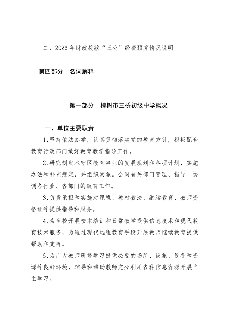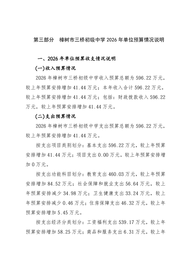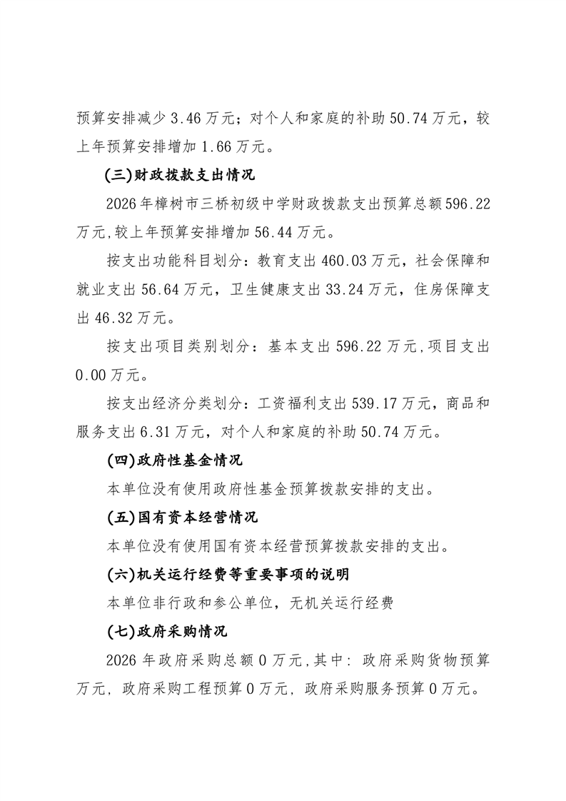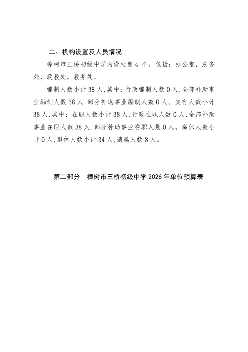 樟樹市三橋初級中學2026年單位預算