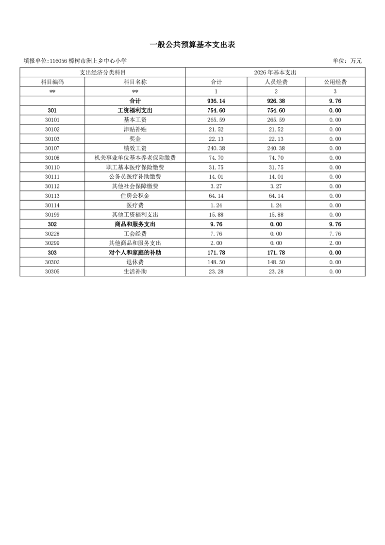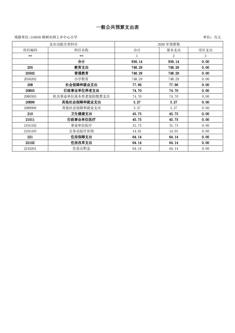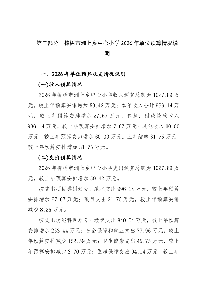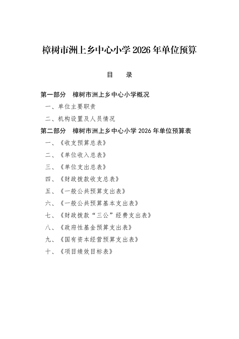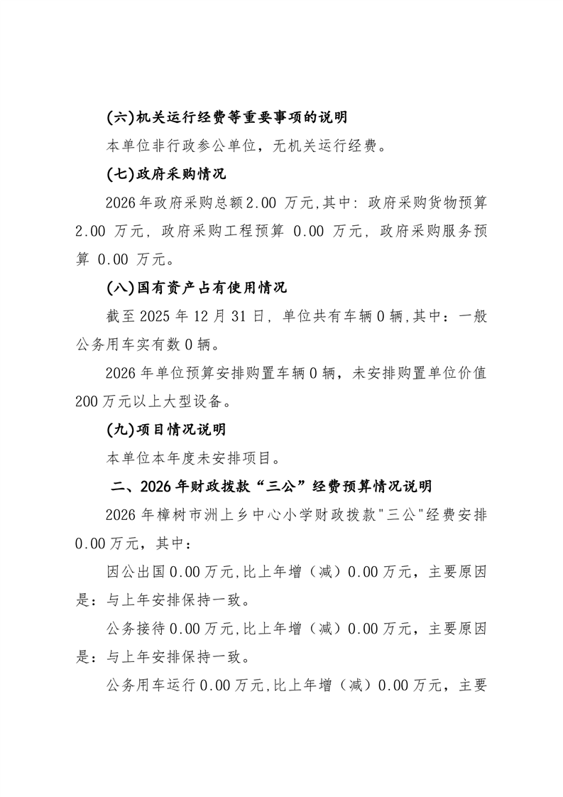 樟樹市洲上鄉中心小學2026年單位預算