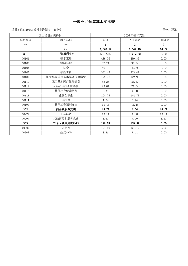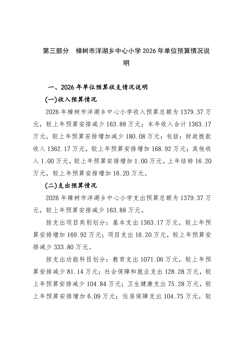 樟樹市洋湖鄉(xiāng)中心小學(xué)2026年單位預(yù)算