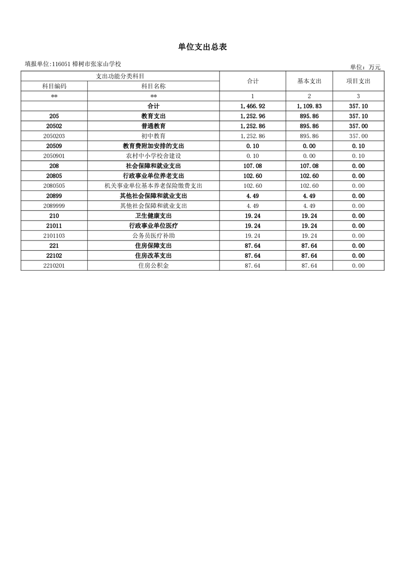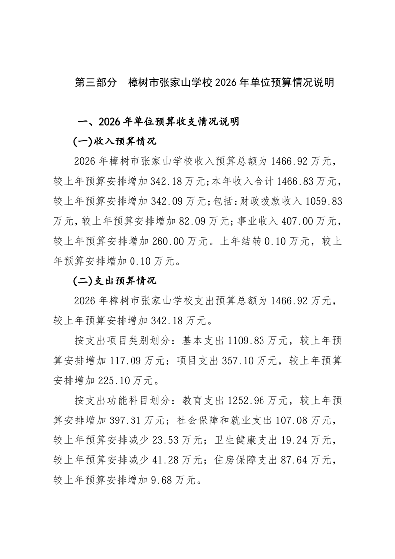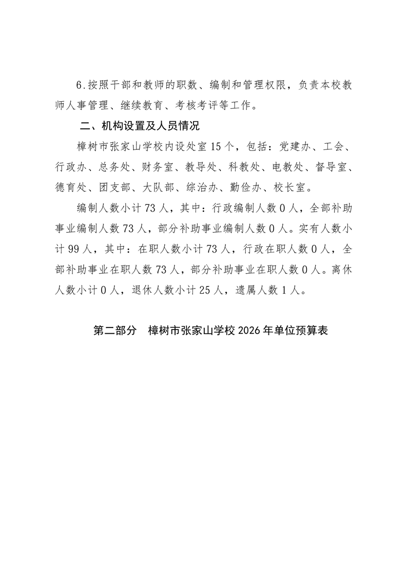 樟樹市張家山學校2026年單位預算