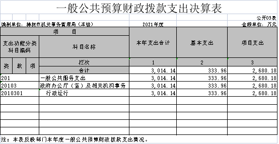 本年支出的具體構(gòu)成為:基本支出333.96萬(wàn)元,占11.08%;項(xiàng)目支出2680.18萬(wàn)元,占88.92%。