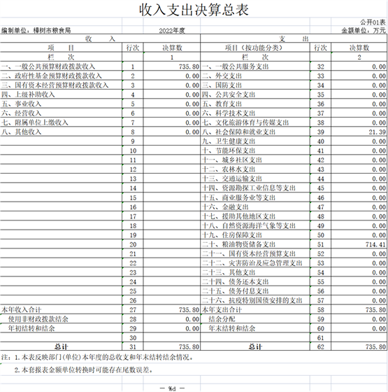 納入本套部門決算匯編范圍的單位共 1 個,包括:樟樹市糧食局。