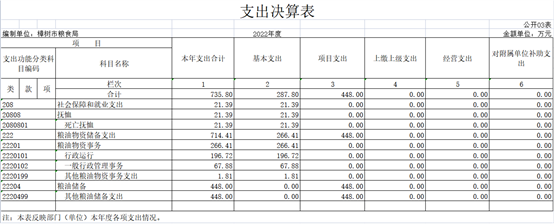 本部門2022年度支出總計 735.80 萬元,其中本年支出合計 735.80 萬元,較2021年增加 233.92 萬元,增長46.6 %,主要原因是:糧油儲備項目經(jīng)費增加,增加人員經(jīng)費,辦公用房租賃費;年末結(jié)轉(zhuǎn)和結(jié)余 0 萬元,較2021年持平。