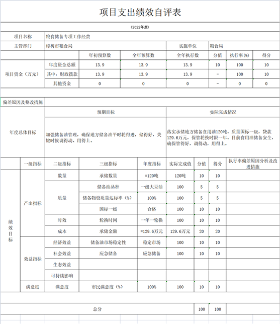 組織開展部門整體支出績效評價,涉及一般公共預(yù)算支出 735.80 萬元,政府性基金預(yù)算支出 0 萬元。從評價情況來看,部門預(yù)算及財務(wù)管理較為規(guī)范,“三公”經(jīng)費未超出年度預(yù)算。制定有糧食供應(yīng)短缺應(yīng)急預(yù)案,倉儲水平得到提升,糧油市場供應(yīng)平穩(wěn),未出現(xiàn)區(qū)域性糧油價格波動情況,切實維護了糧食市場供應(yīng)和價格穩(wěn)定。服務(wù)對象滿意度總體較高。
