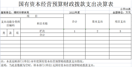 八、國有資本經(jīng)營預(yù)算財政撥款支出決算表