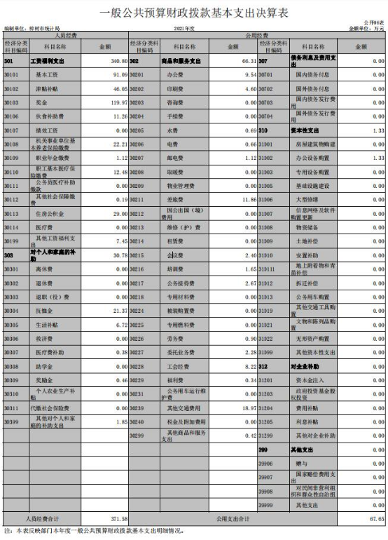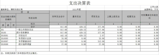 本部門2021年度支出總計817.09萬元,其中本年支出合計817.09萬元,較2020年增加176.12萬元,增長27.47%;主要原因是:發放第七次人口普查“兩員”經費;年末結轉和結余0萬元,較2020年增加0萬元,增長0%。