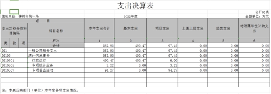 一般公共服務支出年初預算數為587.95萬元,決算數為587.95萬元,完成年初預算的100%,主要原因是:統計信息事務支出。