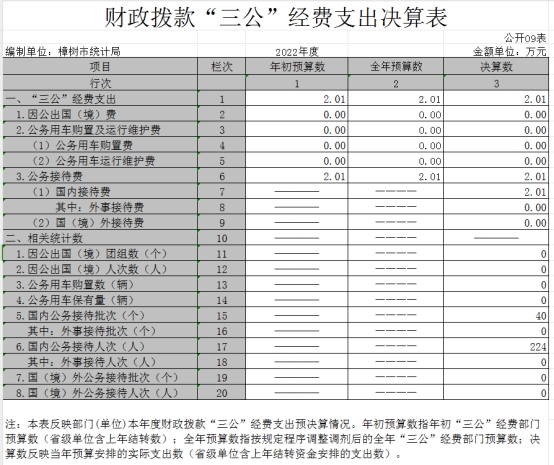 (二)公務接待費支出年初預算數為2.01萬元,決算數為2.01萬元,完成預算的100%,決算數較2021年減少0.66萬元,下降24.72%,主要原因是迎接省級和市級統計執法檢查。全年國內公務接待40批,累計接待224人次,其中外事接待0批,累計接待0人次。