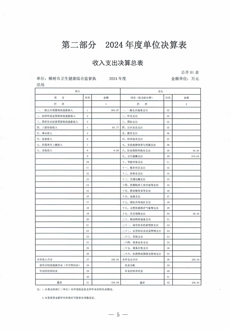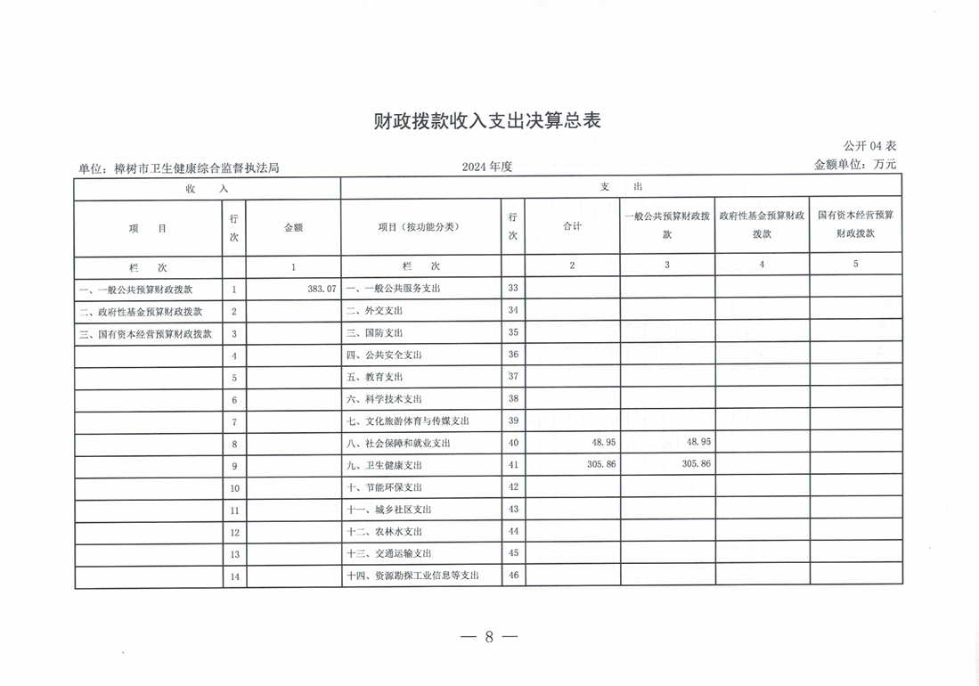 樟樹市衛生健康綜合監督執法局2024年度單位決算