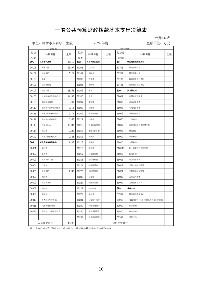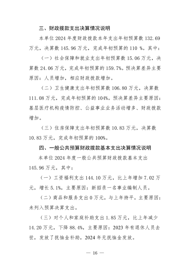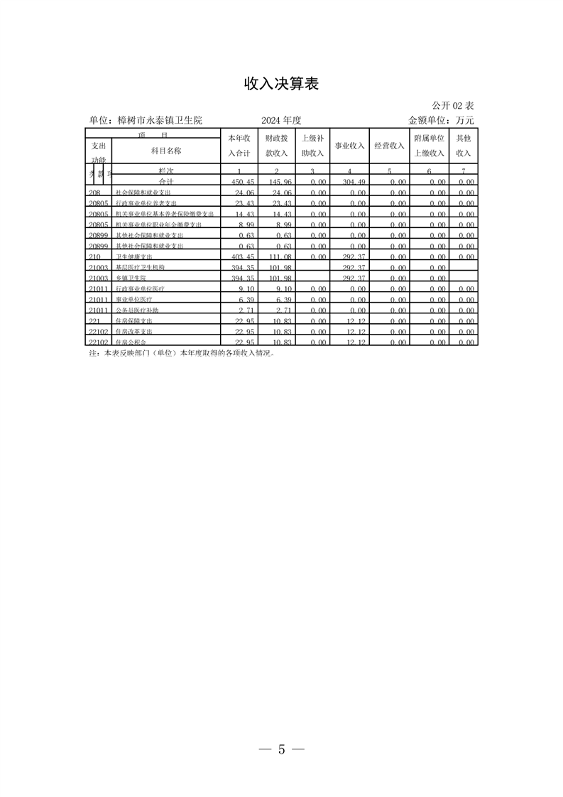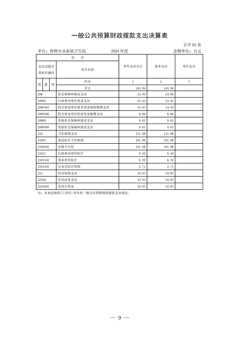 樟樹市永泰鎮衛生院2024年度單位決算