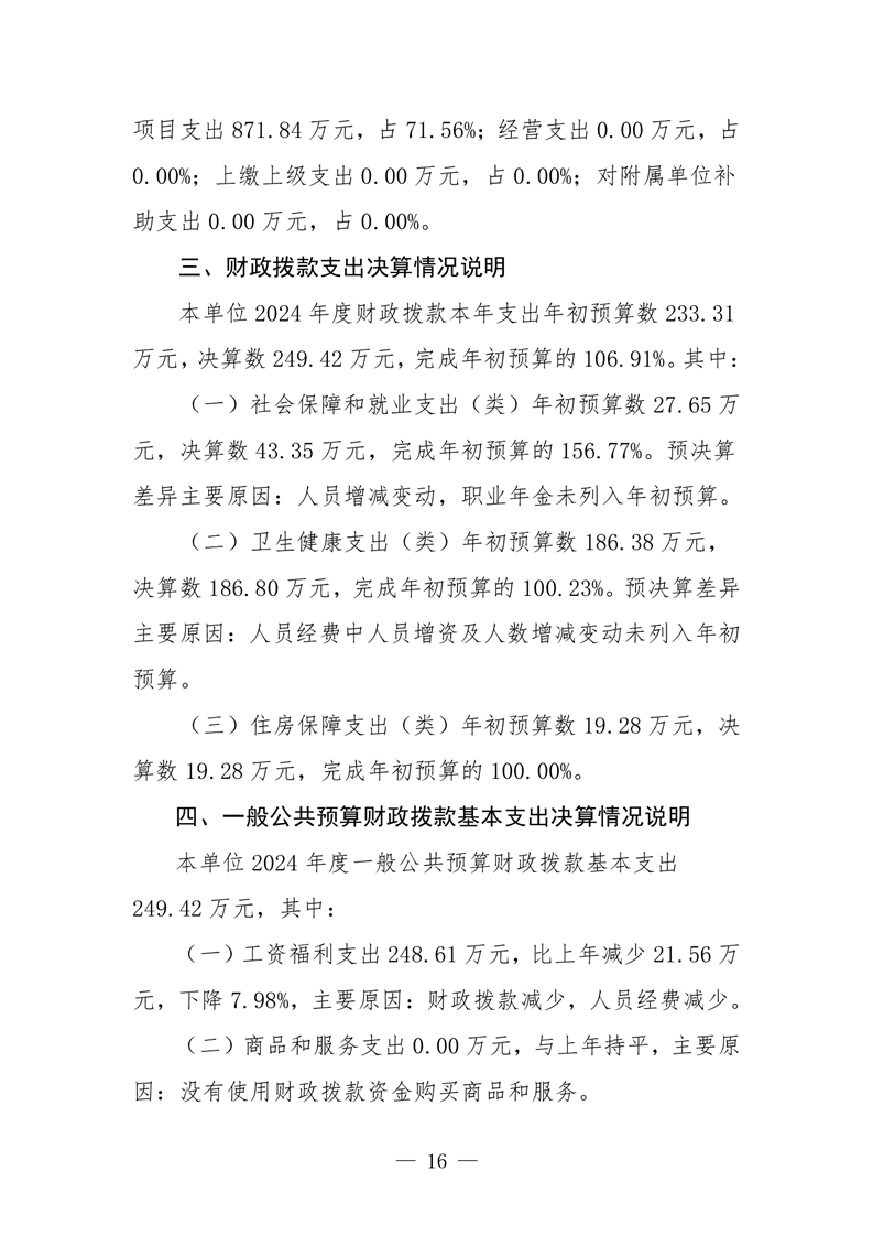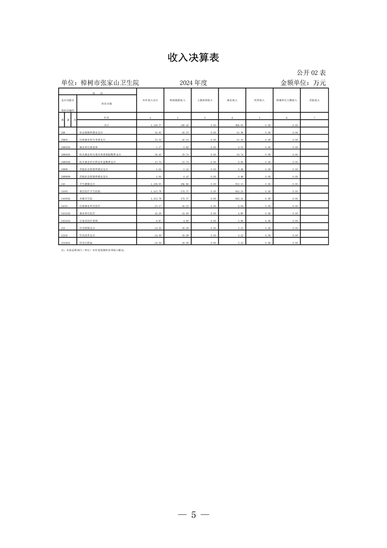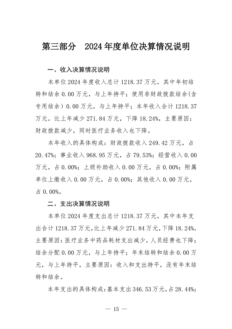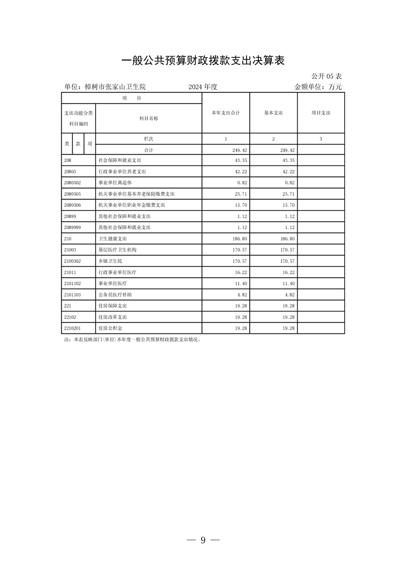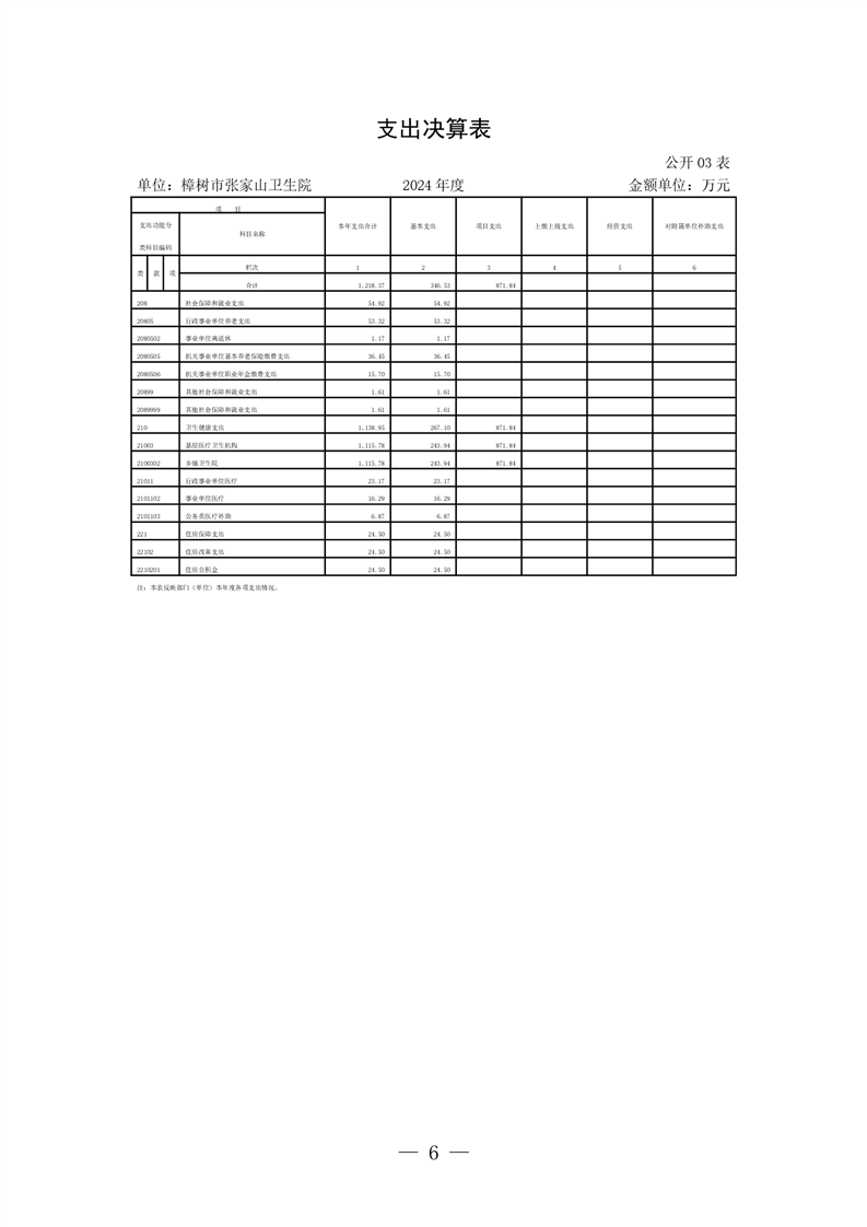 樟樹市張家山衛生院2024年度單位決算