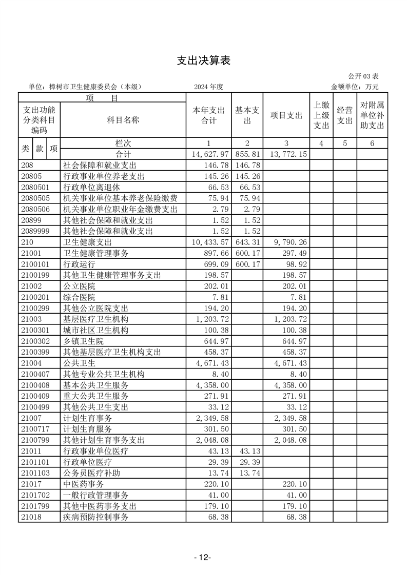 樟樹市衛生健康委員會(本級)2024年度單位決算