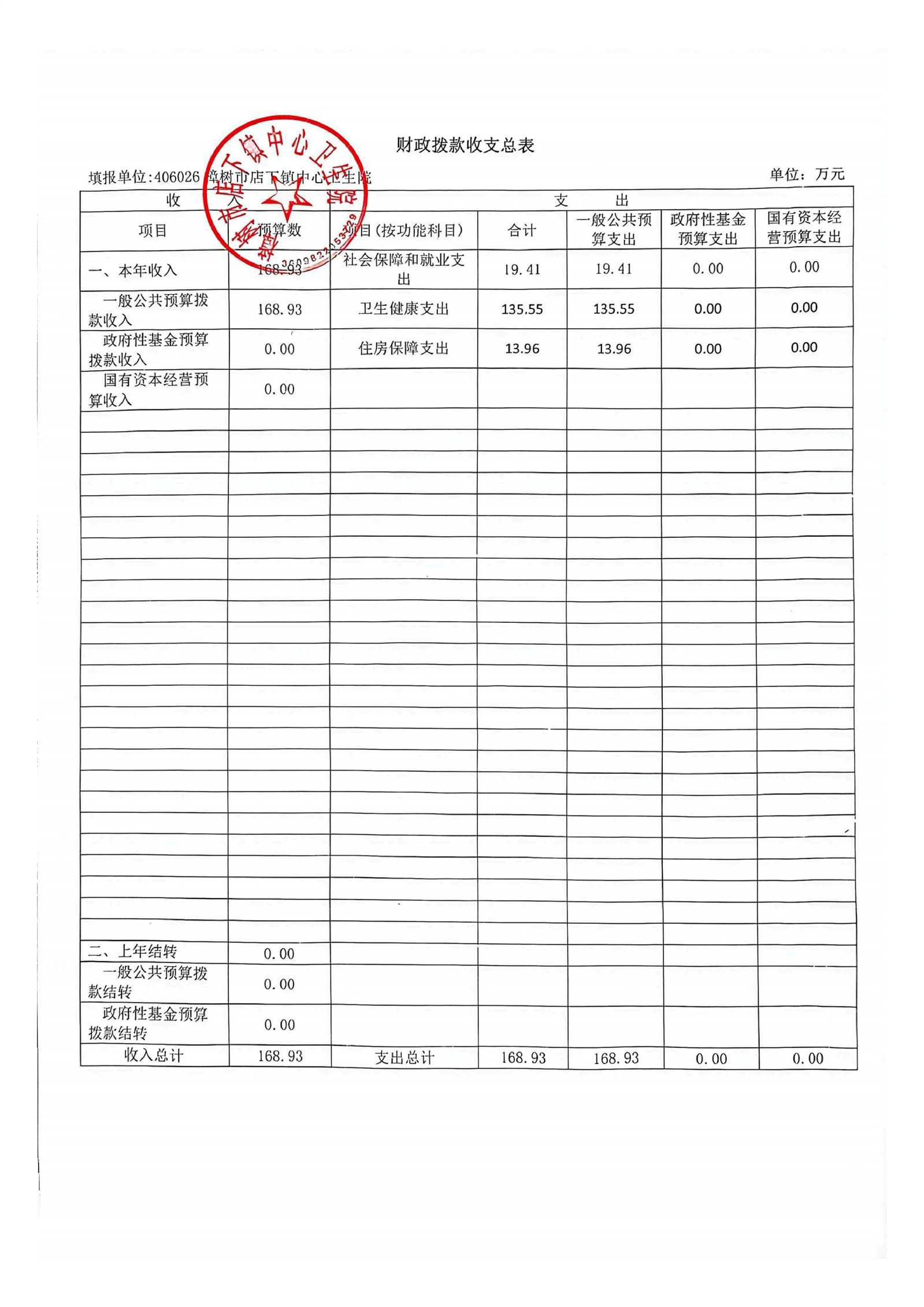 樟樹市店下鎮中心衛生院2026年單位預算