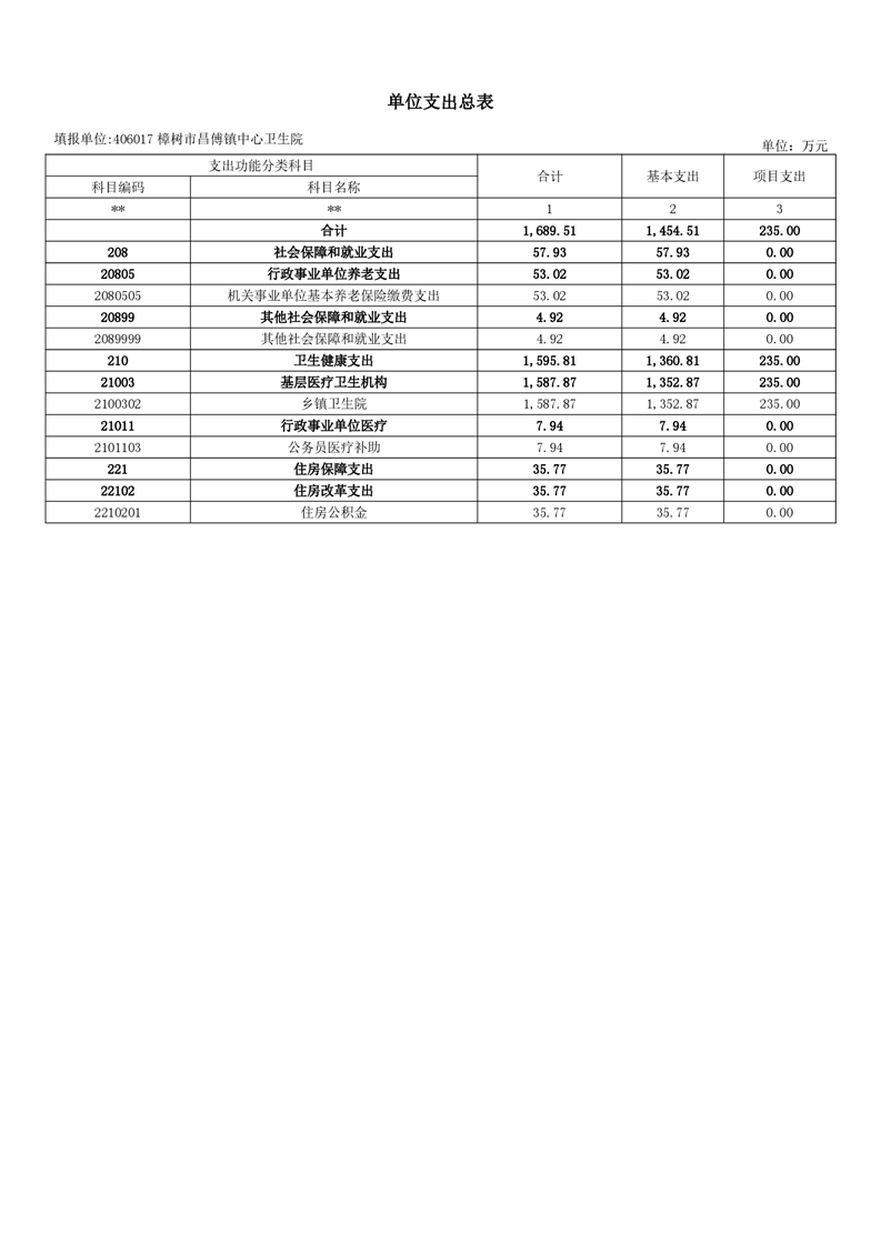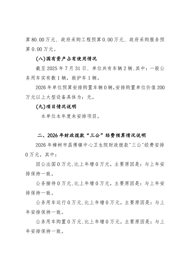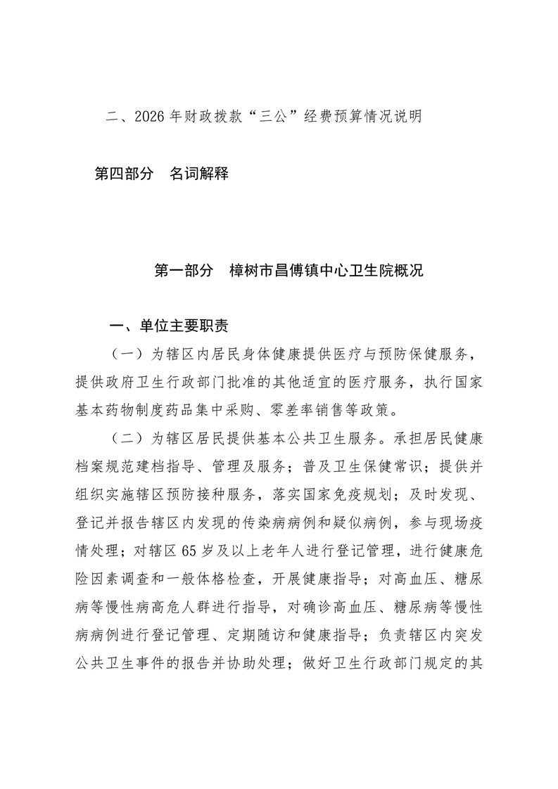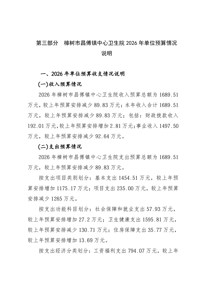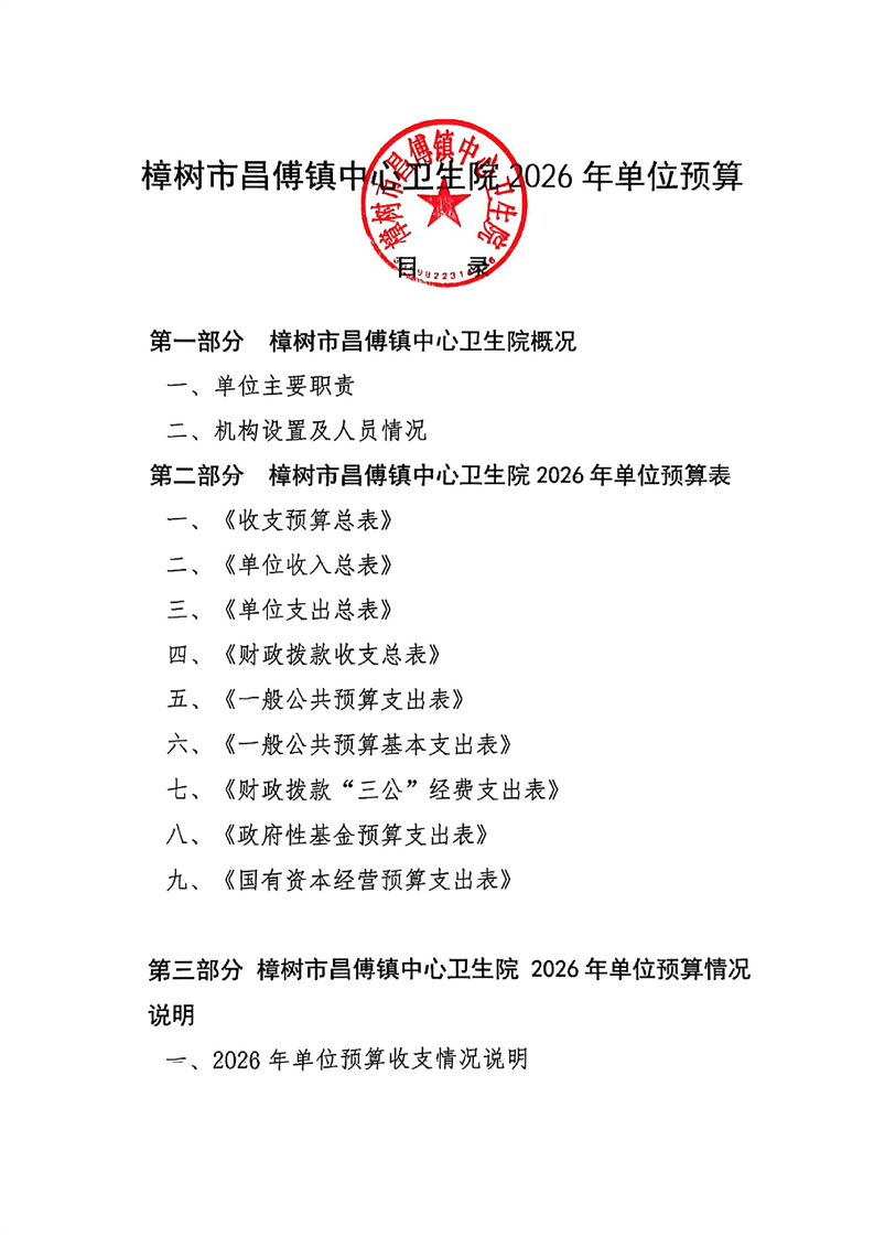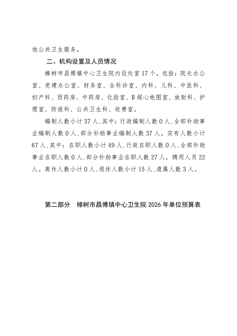 樟樹市昌傅鎮中心衛生院2026年單位預算