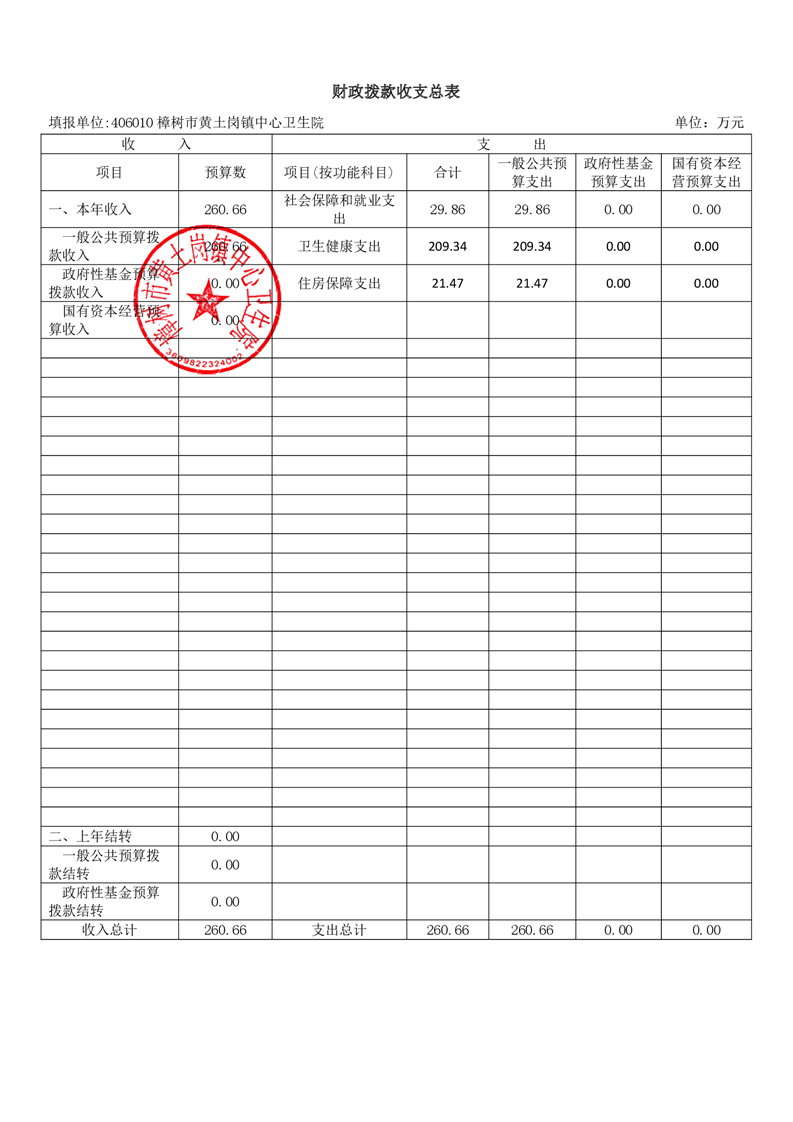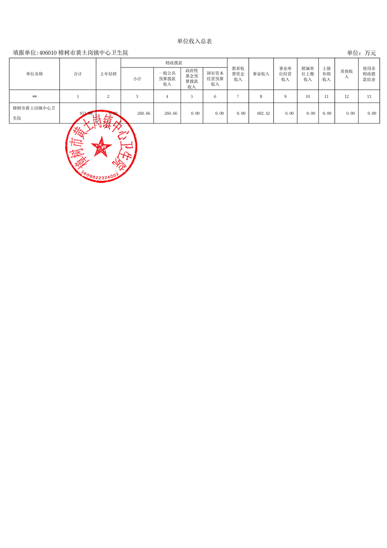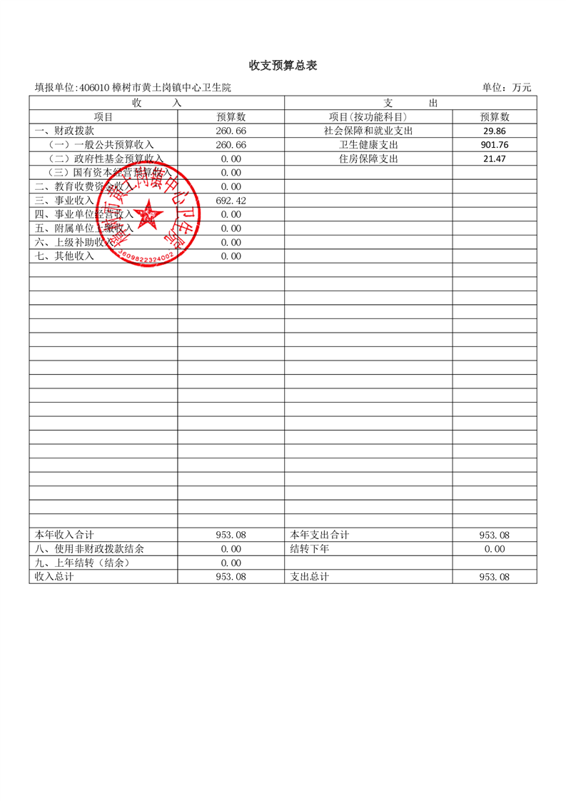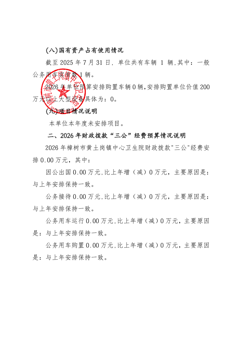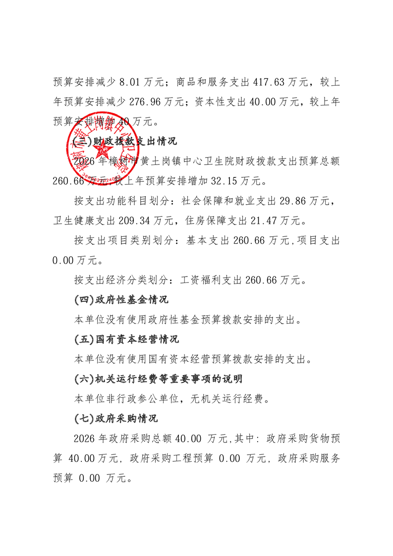 樟樹市黃土崗鎮中心衛生院2026年單位預算