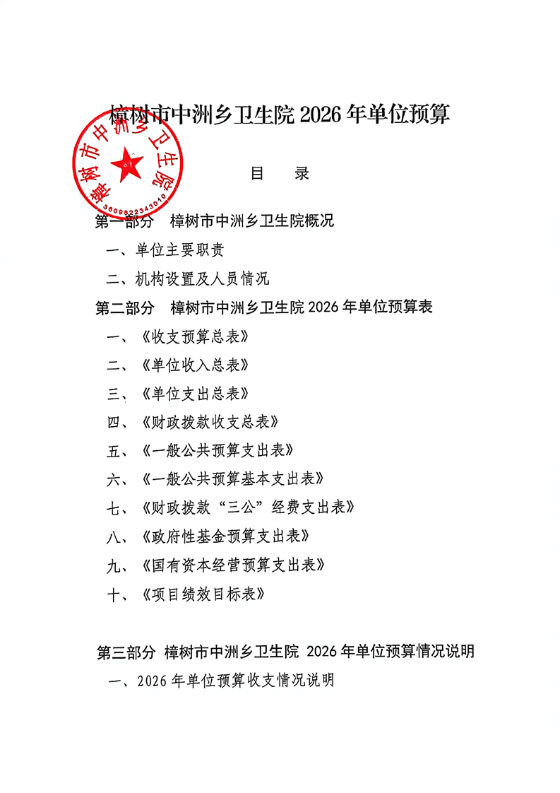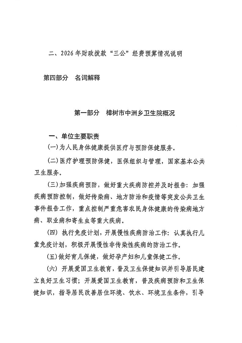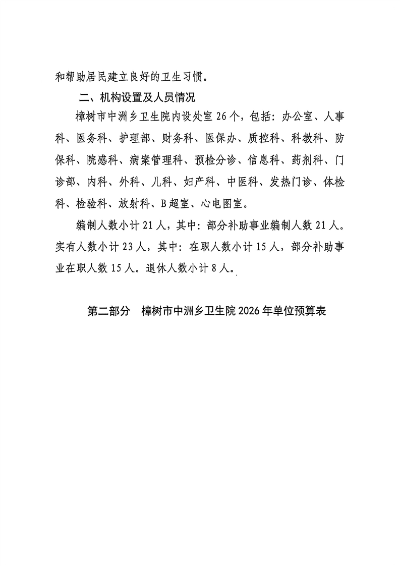 樟樹市中洲鄉衛生院2026年單位預算