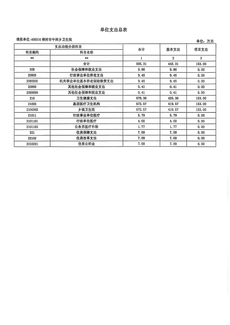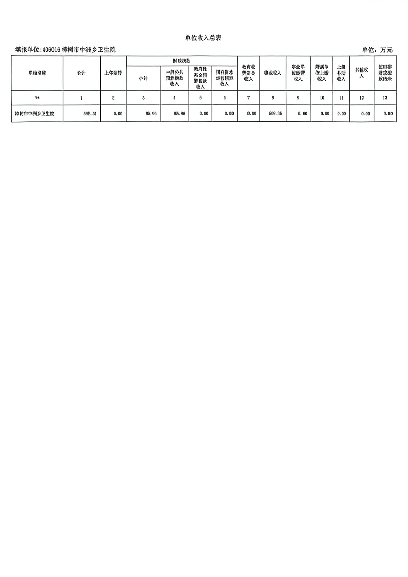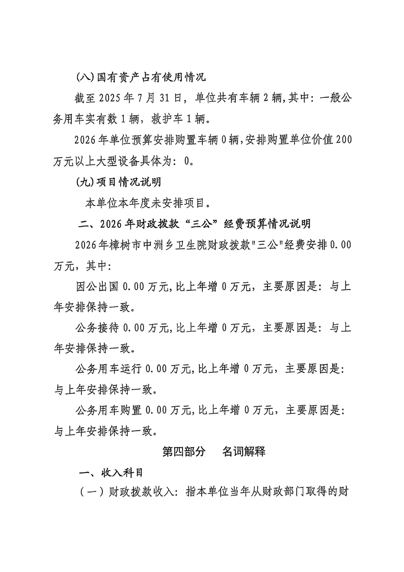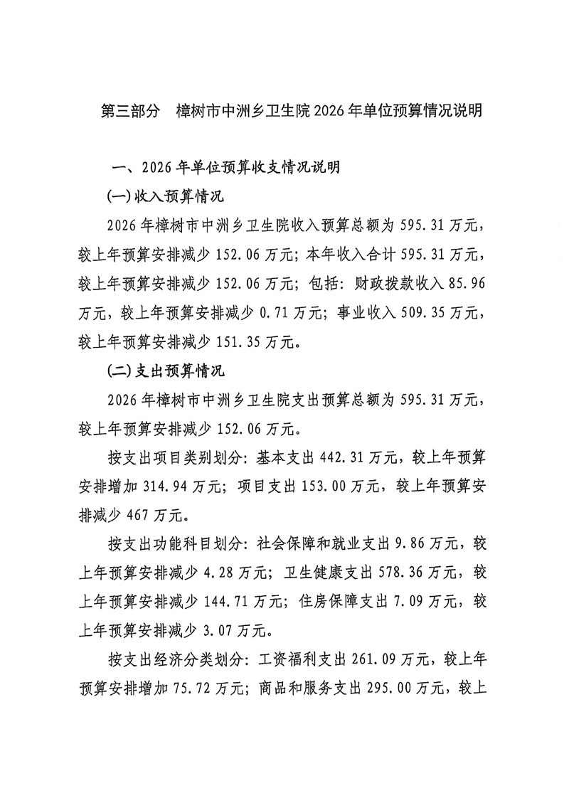 樟樹市中洲鄉衛生院2026年單位預算