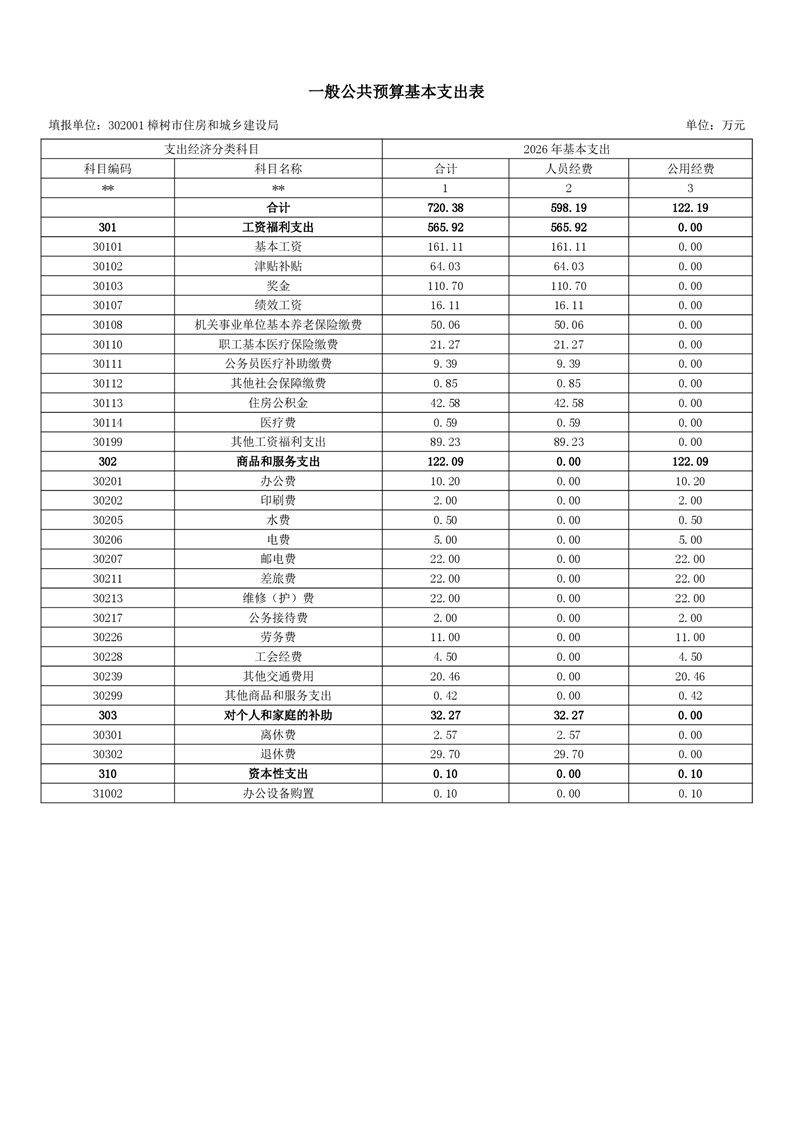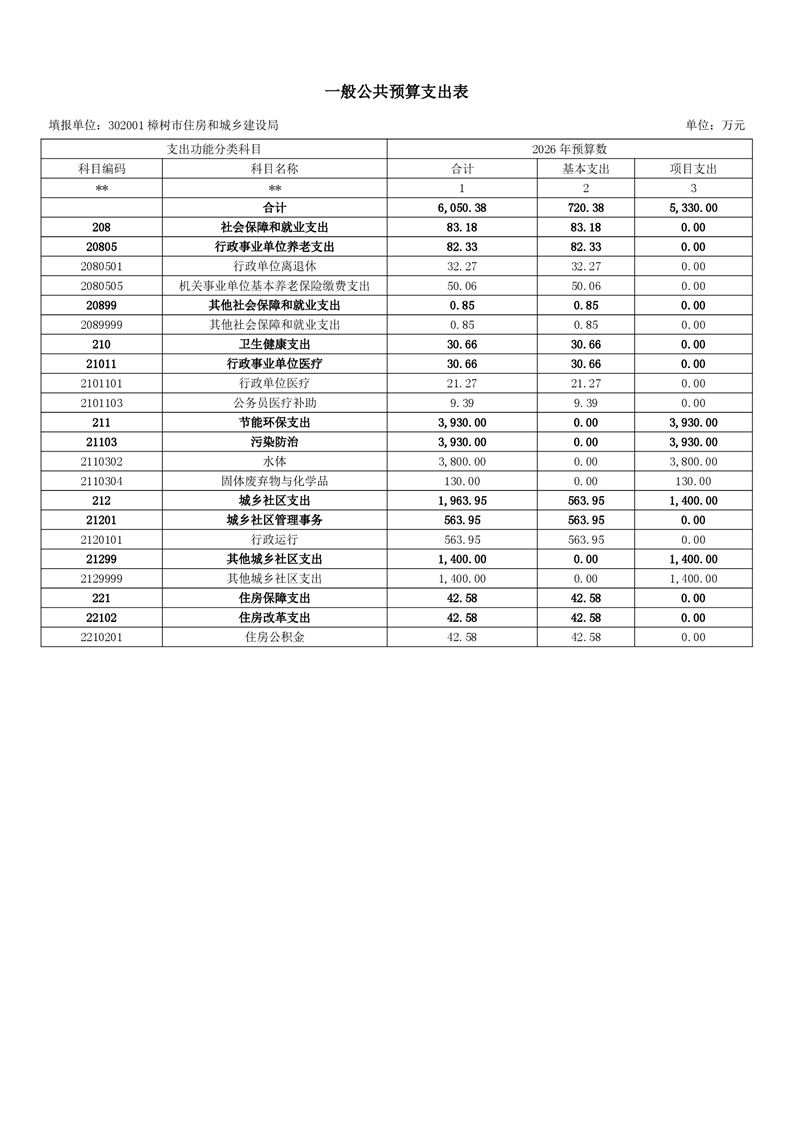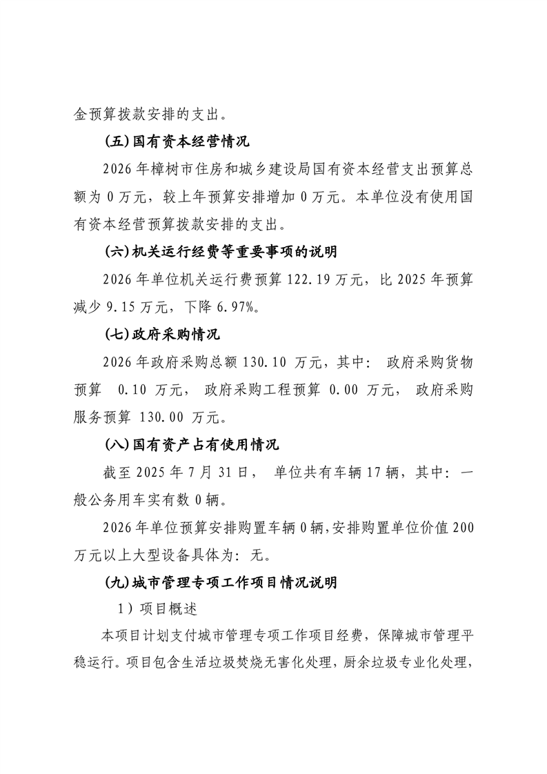 樟樹市住房和城鄉建設局2026年單位預算