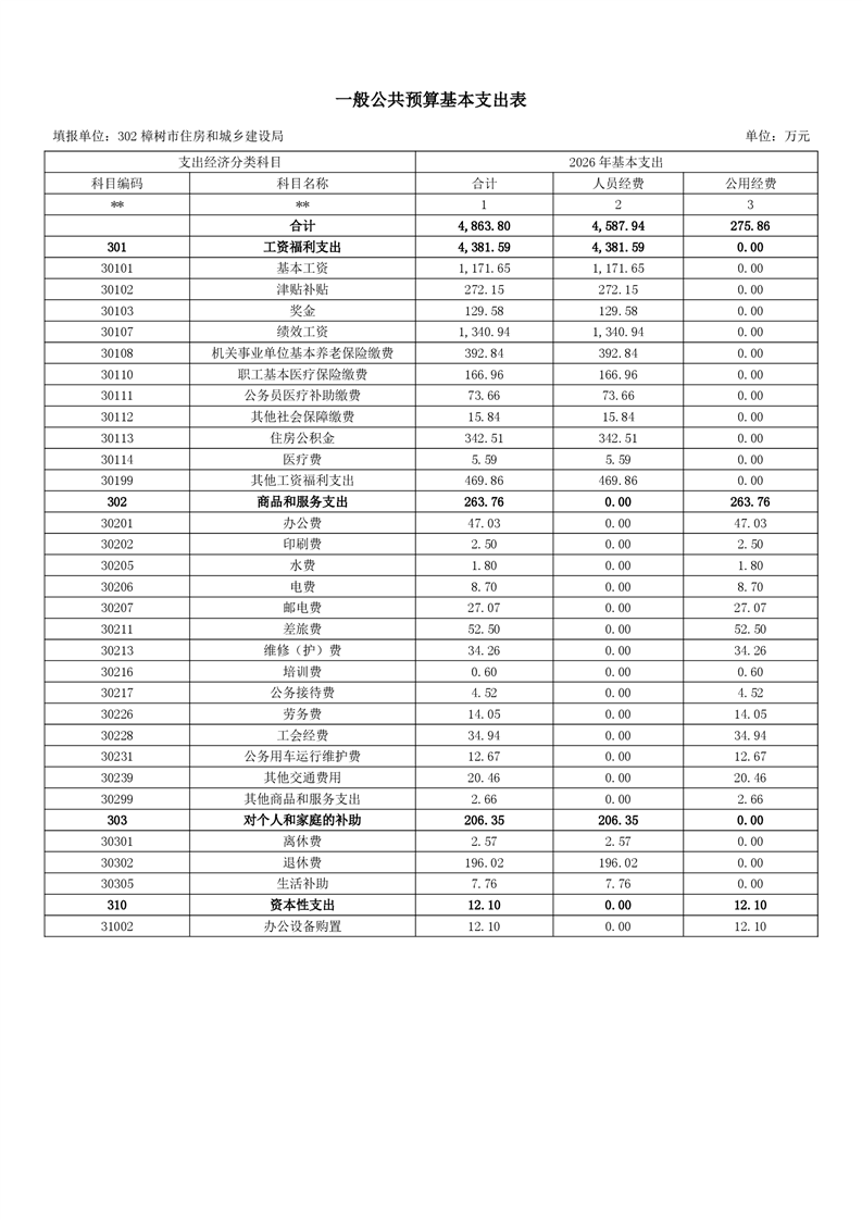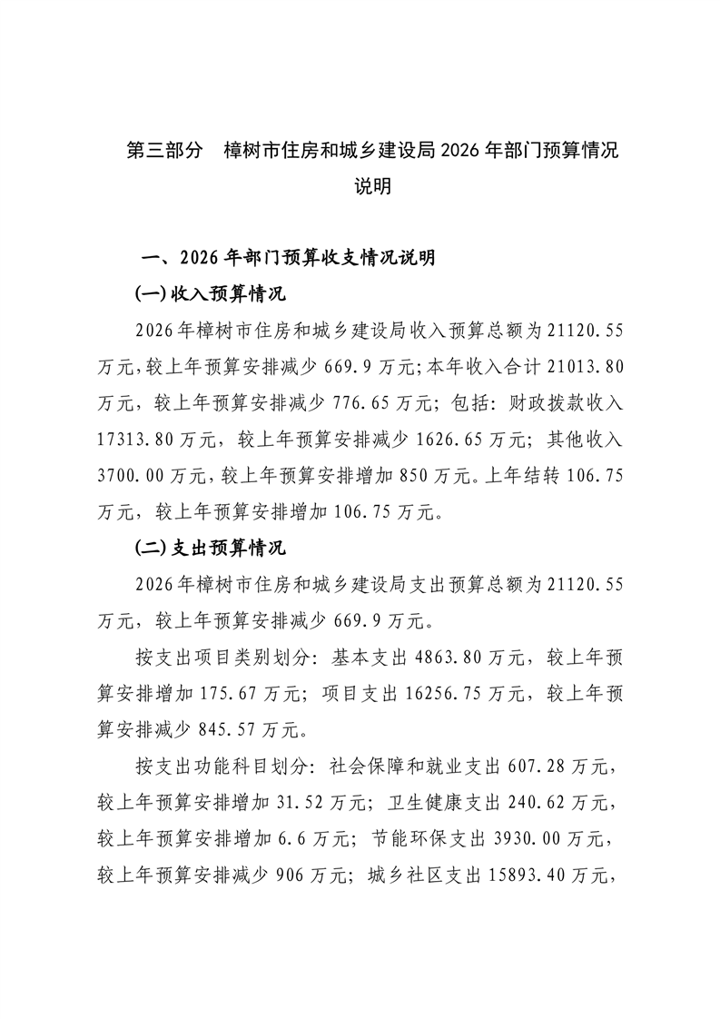 樟樹市住房和城鄉(xiāng)建設(shè)局2026年部門預(yù)算