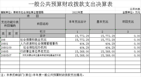 五、一般公共預(yù)算財(cái)政撥款支出決算表