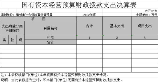 八、國(guó)有資本經(jīng)營(yíng)預(yù)算財(cái)政撥款支出決算表
