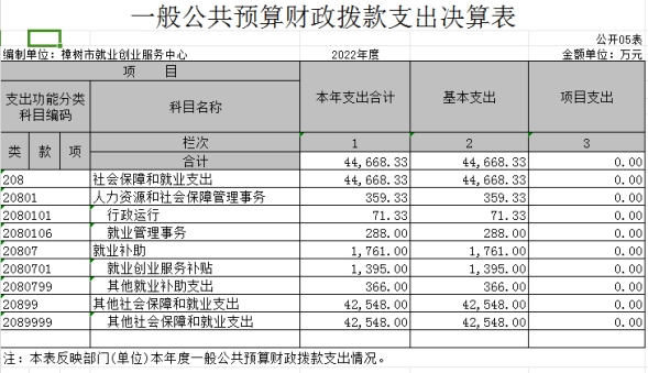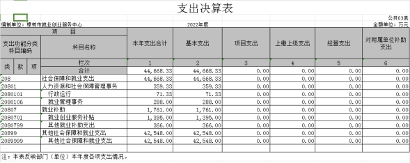 本單位2022年度支出總計4466.83萬元,其中本年支出合計4466.83萬元,較2021年增加1596.81萬元,增長55.64%,主要原因是:積極落實穩就業政策,加大對其他社會保障和就業的支出;年末結轉和結余0萬元,較2021年增加0萬元,增長0%。