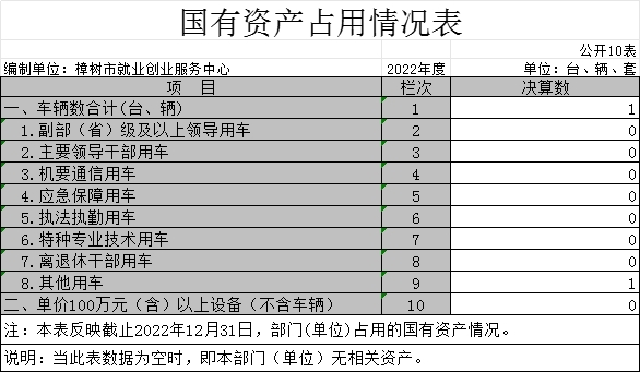 截止2022年12月31日,本單位國有資產占用情況見公開10表《國有資產占用情況表》。其中車輛中的其他用車主要是一般公務用車。