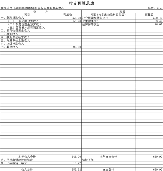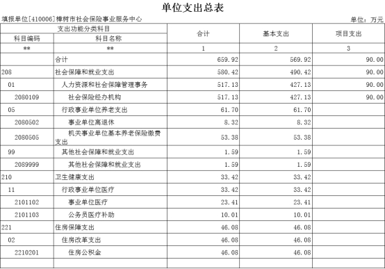 2024年樟樹市社會保險事業服務中心支出預算總額為659.92萬元,較上年預算安排896.3萬元減少236.38萬元,其中: