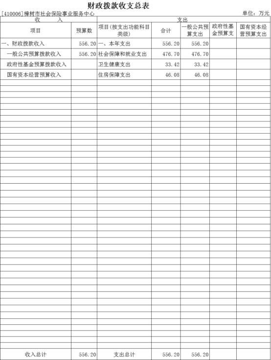 2024年樟樹市社會保險事業服務中心財政撥款支出預算總額556.2萬元,較上年預算安排596.3萬元減少40.1萬元。