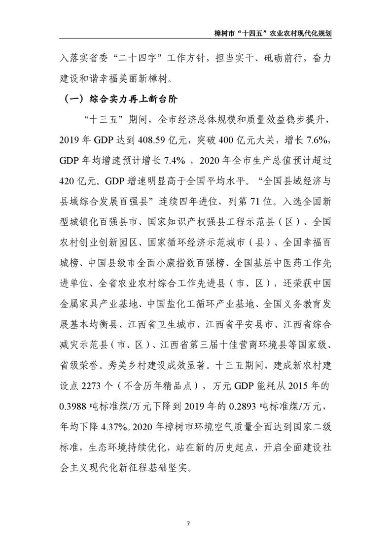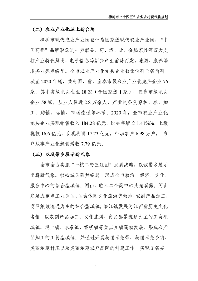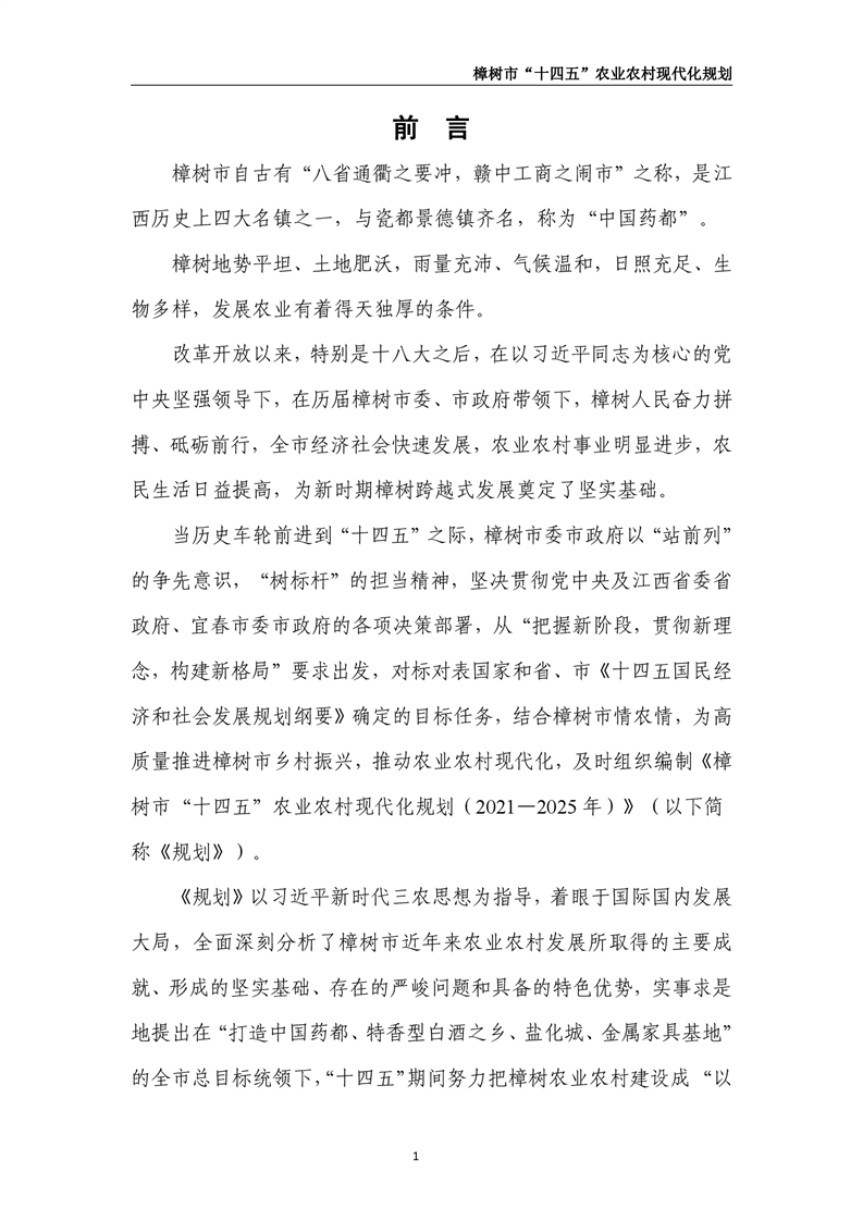 樟樹市“十四五”農業農村現代化規劃(征求意見稿)
